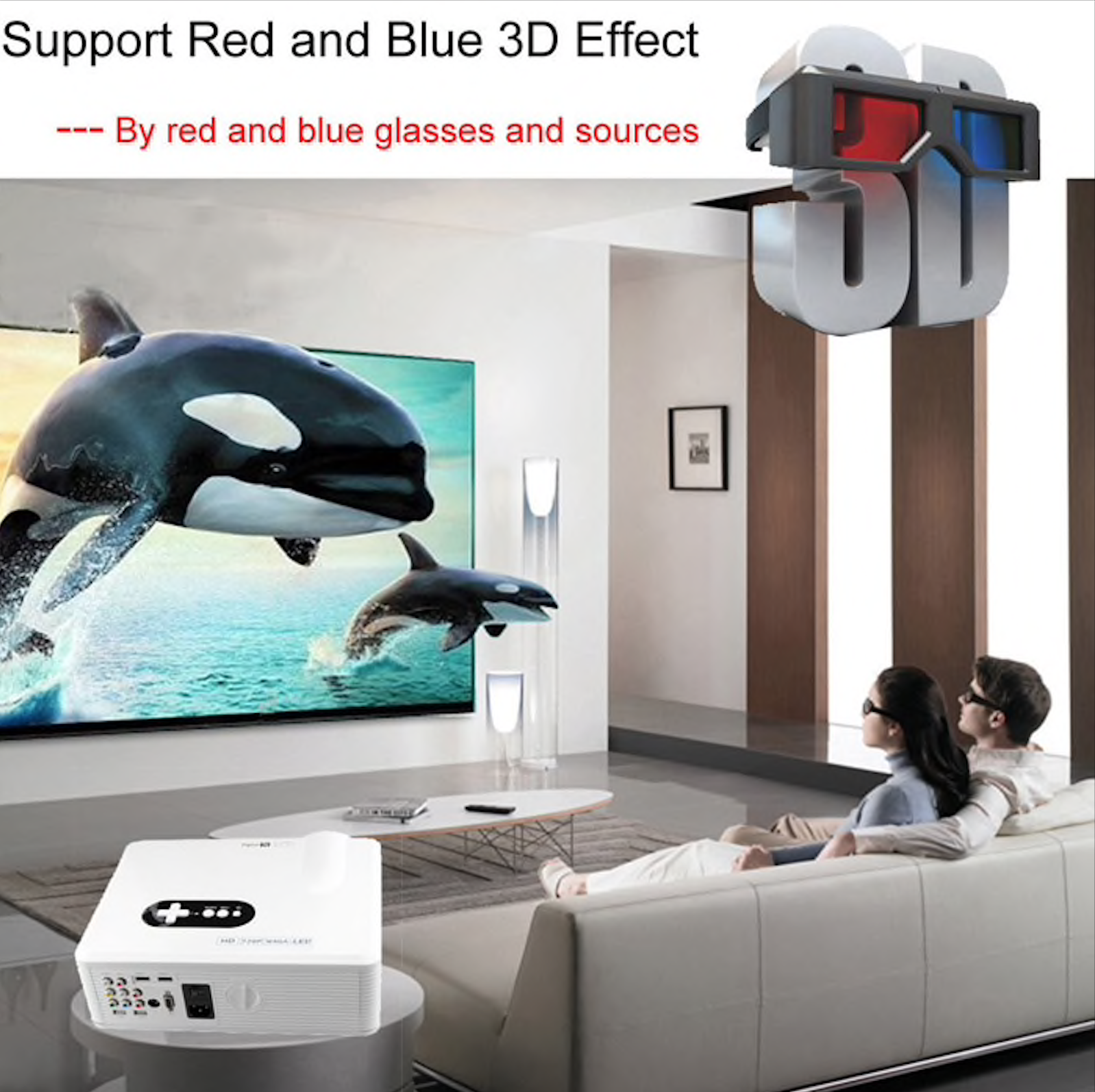 이 해외직구 프로젝터의 기본 해상도는 854x480인데 1080p까지 지원할 수는 있다고 한다. 밝기는 1800루멘으로 일반 가정의 실내 환경에서 사용할 수 있을 정도의 밝기라고 한다.
