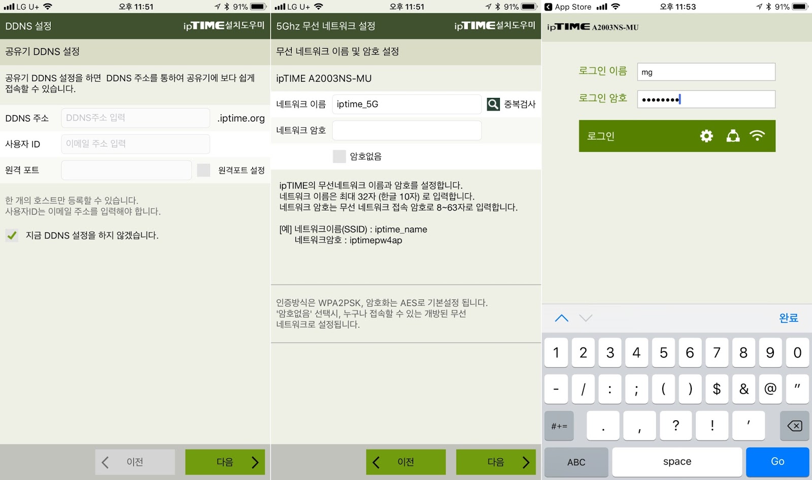 설치하는 중에 계정을 만들게 되는데, 이 계정은 아이피타임 공유기를 설정하기 전 로그인할 때 사용되기 때문에 꼭 기억해두자. DDNS 주소는 설치한 이후에 따로 설정할 수도 있다.