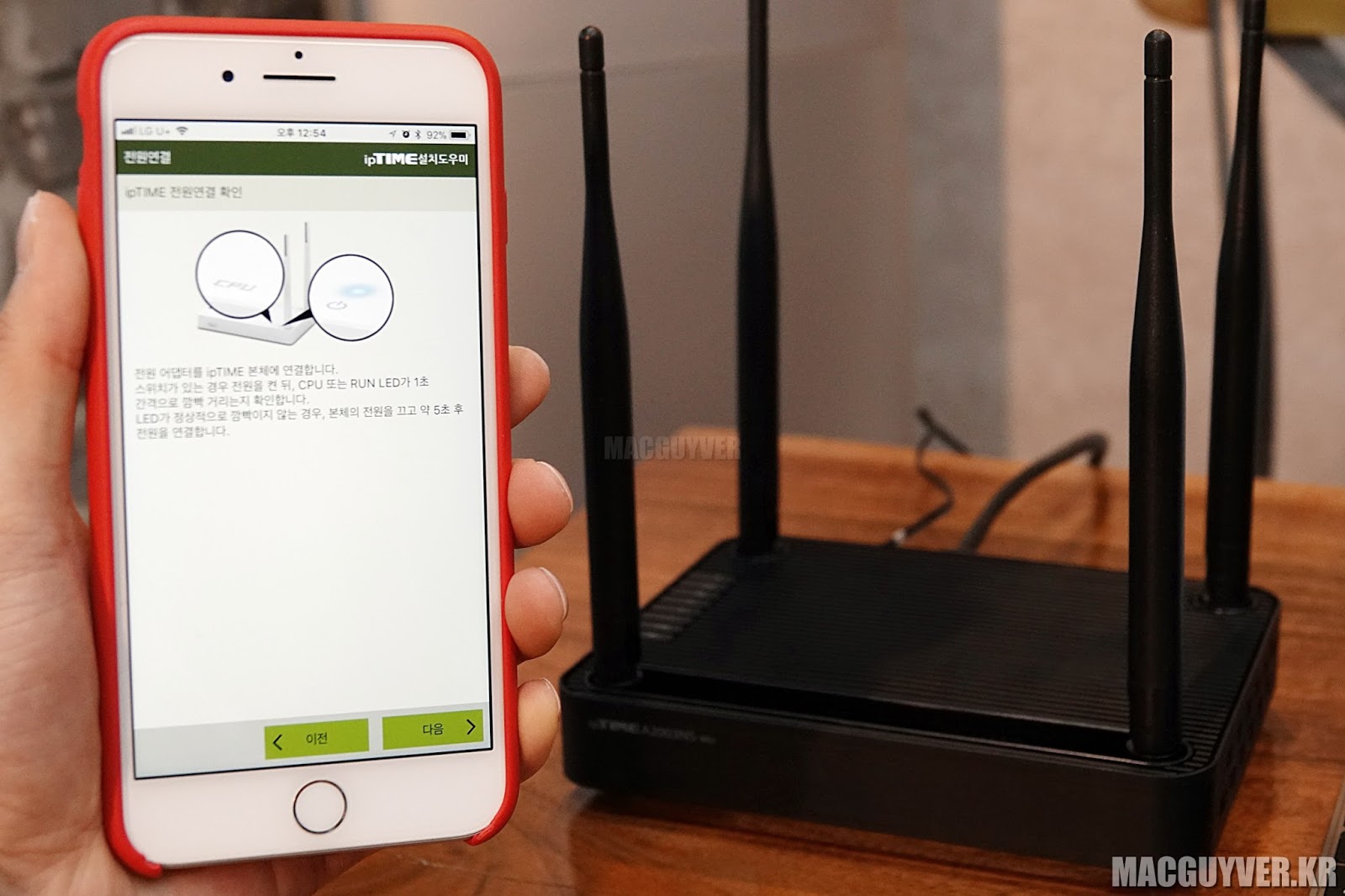 개인적으로는 스마트폰의 ipTIME 설치 도우미 앱으로 공유기를 설치하는 것을 선호하는데, 데스크탑으로 하는 것보다 더 간편하고, ‘다음’만 누르다 보면 어느새 설치가 되어 있다.