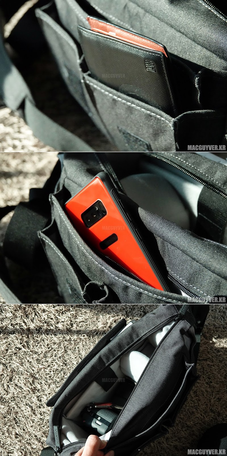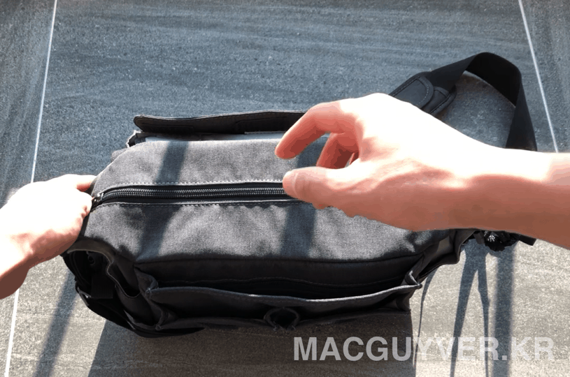A. 메인 포켓의 파티션들에 붙어 있는 벨크로의 위력이 굉장히 강하다. 그래서 아주 세밀한 조정은 어려운 것 같다.