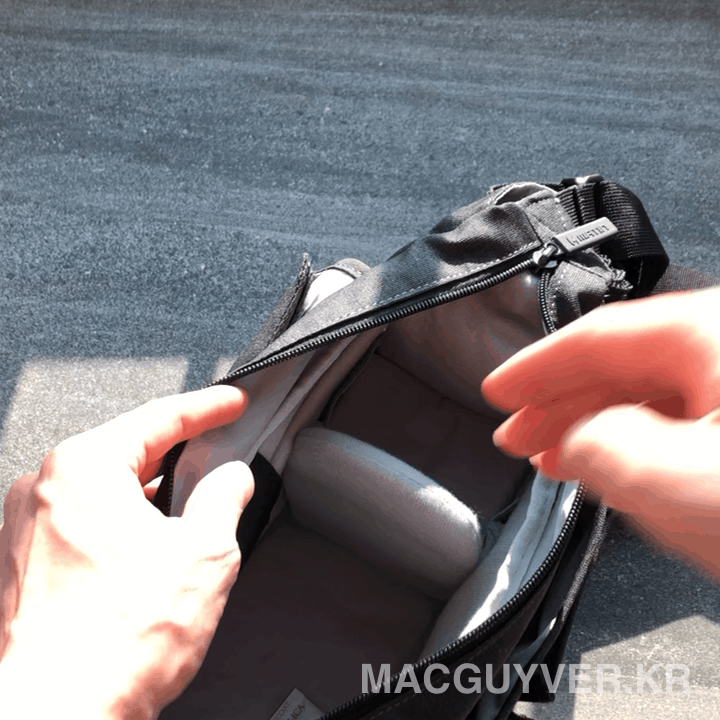 물론 소니 알파 정도의 미러리스 카메라와 단렌즈 하나 정도는 들어가는 사이즈이지만, 움직이면서 서로 스크래치를 낸다는 문제 때문에 두가지 이상 물건을 넣기 위해서는 천으로 둘러쌀 필요가 있었다.