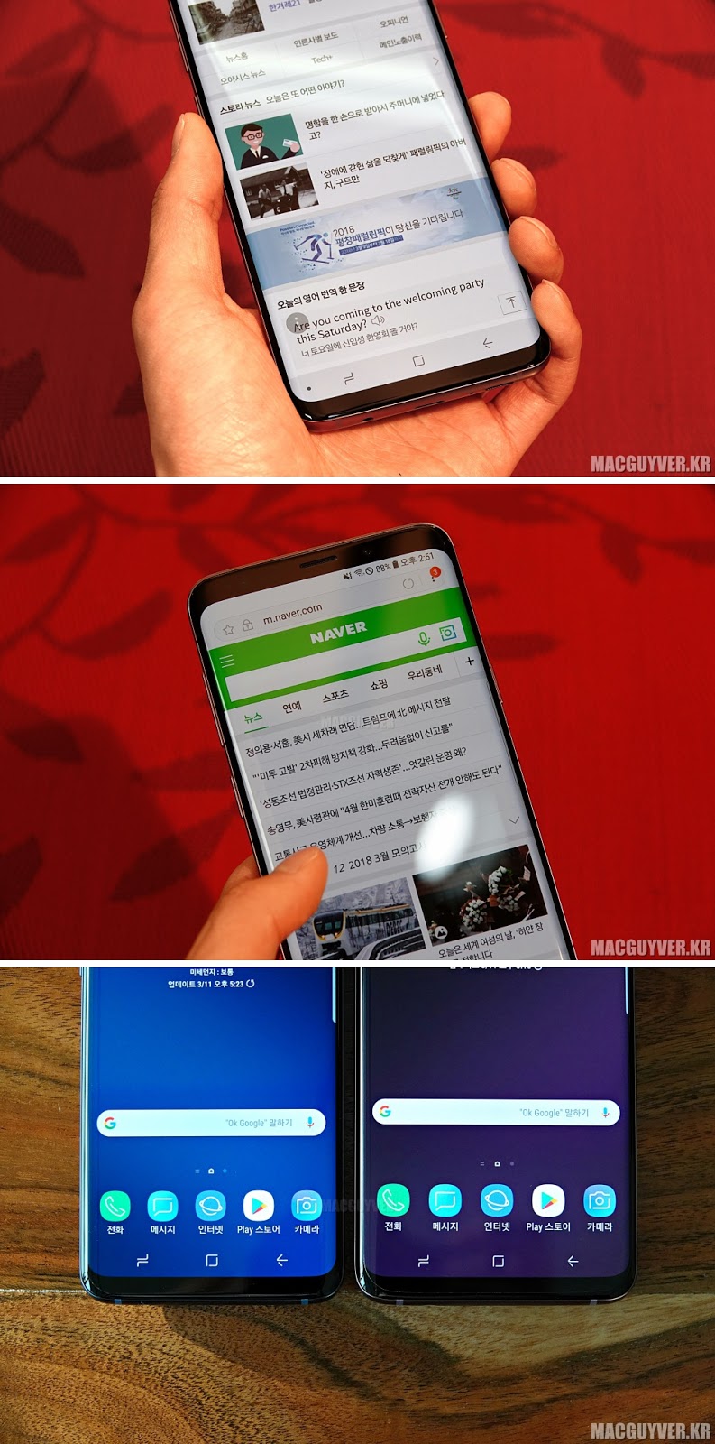 ✎ 갤럭시S9과 갤럭시S9 플러스 모두 선명한 화면을 보여 주었지만, 갤럭시S9이 조금 더 선명해 보였다.