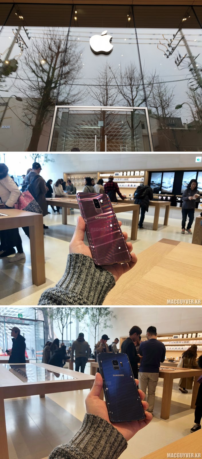 ✎ 애플 로고가 친절하게 반겨주고 있는 애플 가로수길에서의 갤럭시S9, 갤럭시S9 플러스