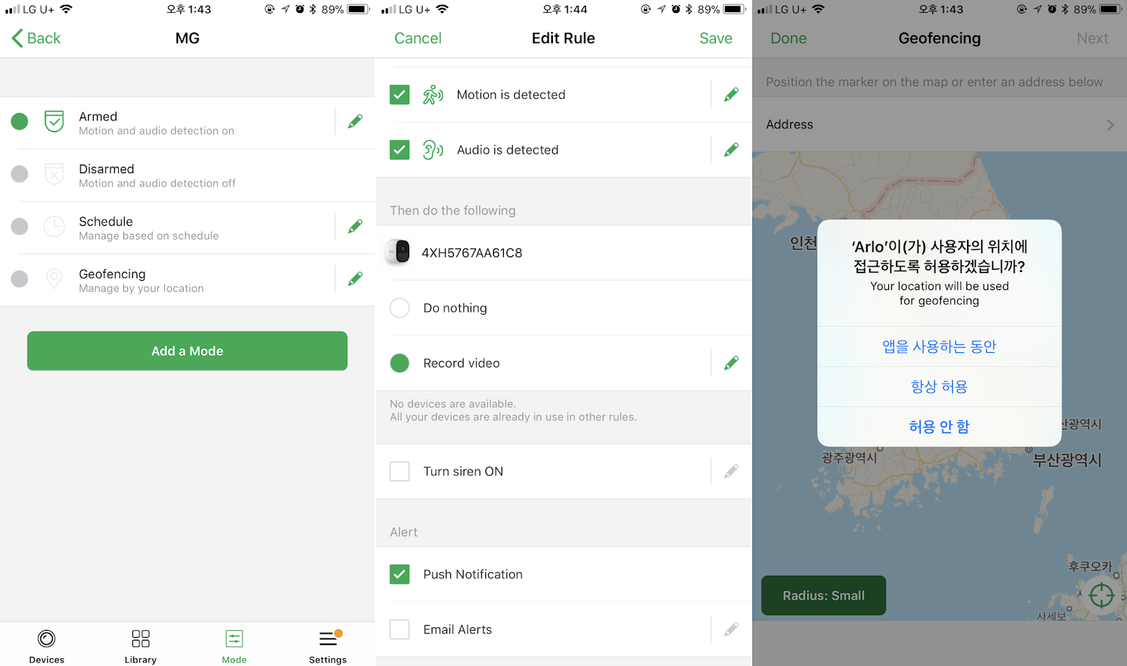 그리고 스마트폰을 조작해서 알로 프로 홈 CCTV에 100dB 이상의 고출력 사이렌이 울리게 할 수도 있어서 즉각적인 대응 역시 가능하다.