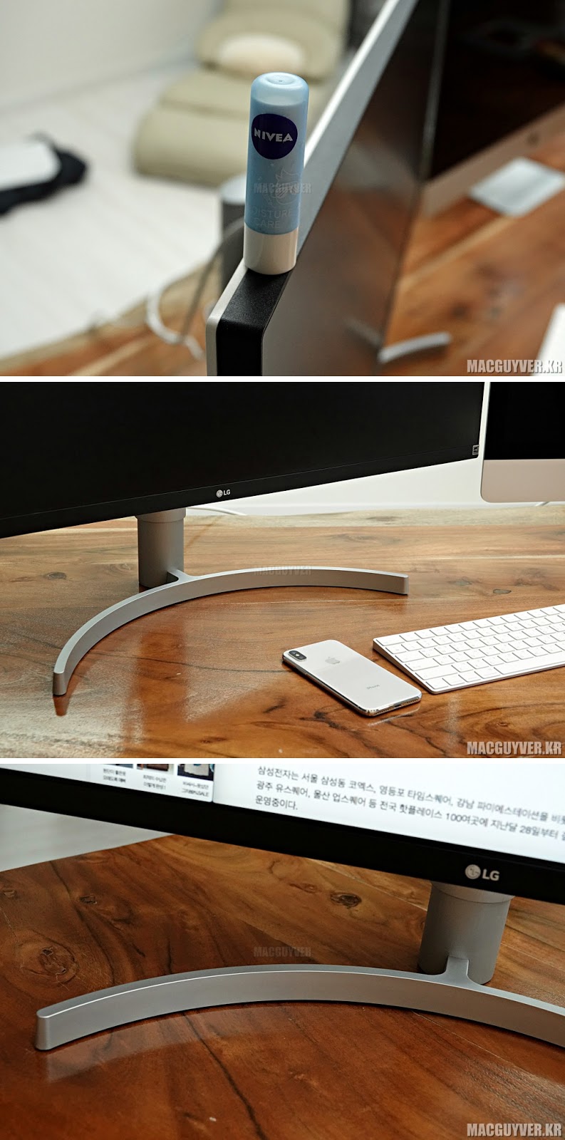 그리고 심플한 디자인은 전면이 블랙으로, 측면과 후면이 화이트로, 스탠드가 실버로 깔끔하고 심플한 디자인을 추구하면서 그 자체로 슬림한 디자인과 튀지 않는 무난한 고급스러움을 드러내고 있다.