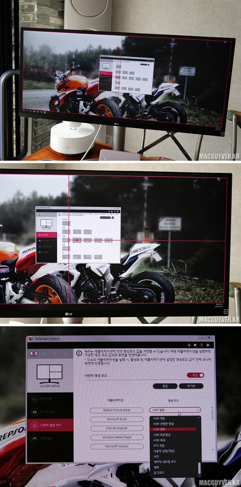 기본적으로 LG 울트라와이드 34WK650은 안티글레어 패널을 적용했기 때문에 아이맥이나 맥북 프로에서 볼 수 있는 쨍한 느낌보다는 보다 더 소프트하고 부드러운 느낌을 전달한다.