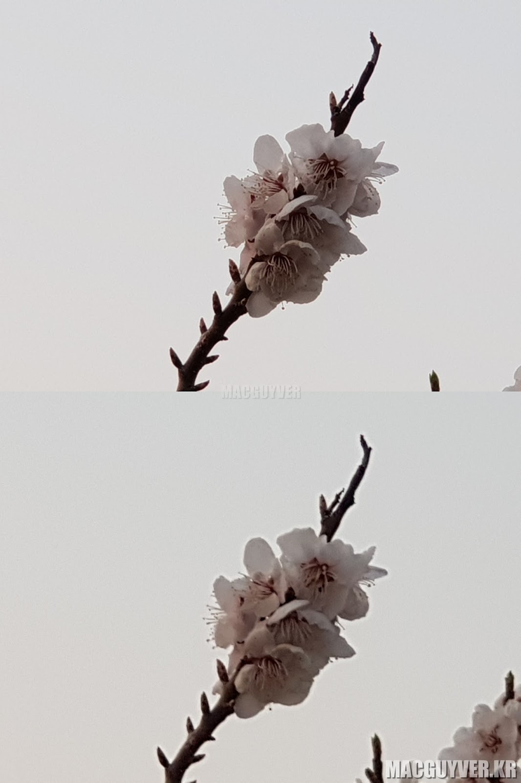 ✎ 10배 줌 이미지, 위쪽이 갤럭시S9 / 아래쪽 사진이 갤럭시노트8 사진이다.