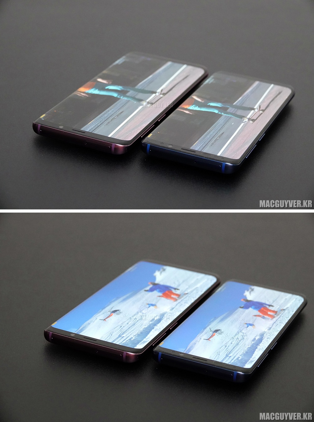 ✎ 보호필름 부착 유무 사진. 갤럭시S9에는 필름을 부착하고, 갤럭시S9플러스는 부착하지 않은 상태이다.