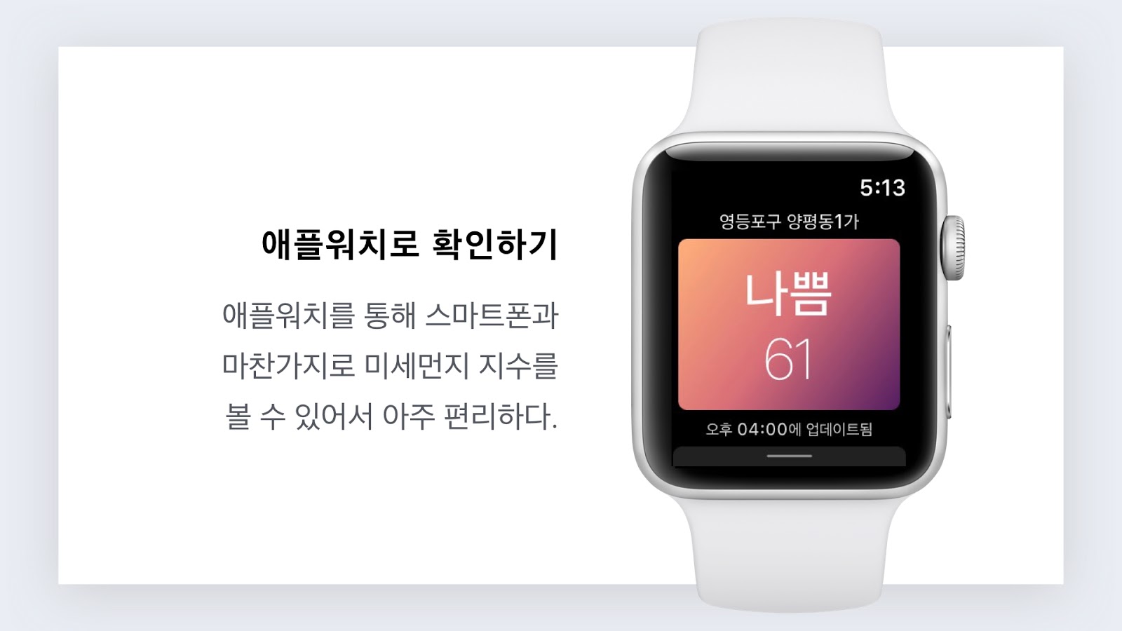 ✎ 애플워치로도 미세먼지 체크를 해볼 수 있어 일일이 스마트폰을 꺼내들지 않아도 된다.