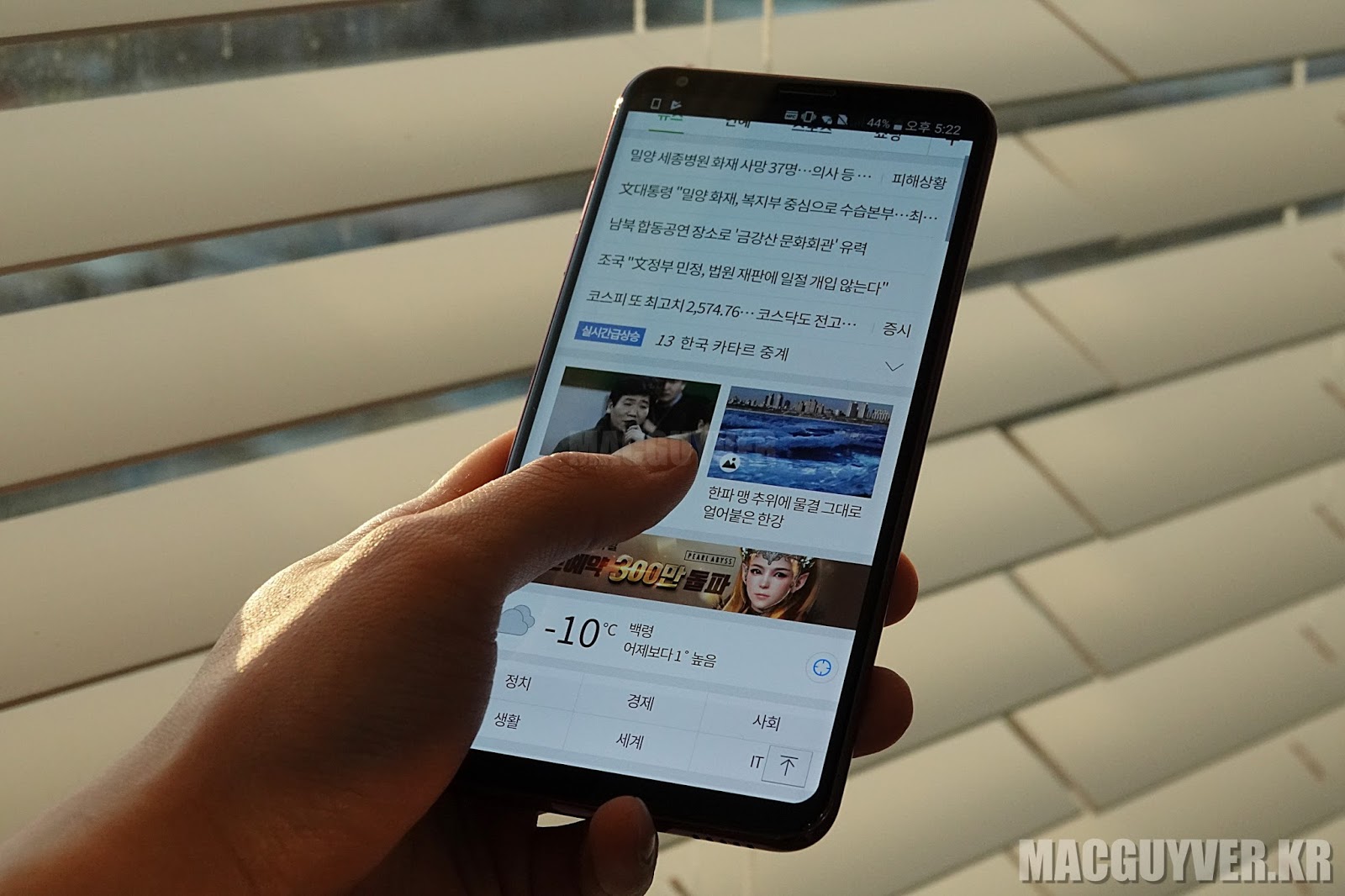 우선 V30는 18:9 비율을 가지고 있기 때문에 화면 비율만 놓고 보자면 일반적인 16:9 비율의 디스플레이와 가장 가깝다는 점에서 콘텐츠가 잘려나가는 부분이 작고 화면이 상대적으로 크게 다가오는 장점을 가지고 있다.