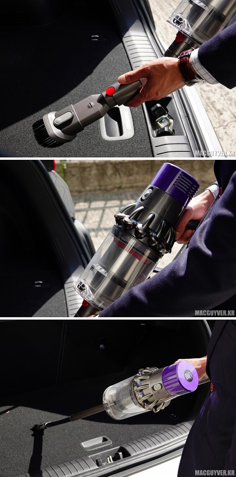 ✎ 차량 청소의 경우 다이슨 싸이클론 V10 무선청소기의 가볍고 놀라운 흡입력으로 손쉬운 청소가 가능했다.