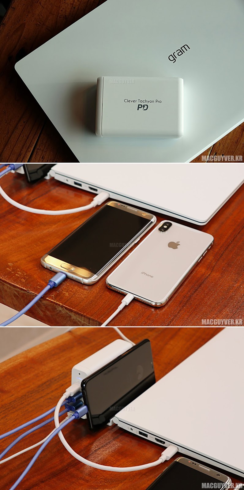 여행을 떠날 경우 그램이나 맥북 및 스마트폰과 다양한 스마트기기와 함께 클레버 타키온 프로 고속 PD 충전기 하나만 가지고 가면 모든 충전을 하나로 끝낼 수 있기 때문이다.
