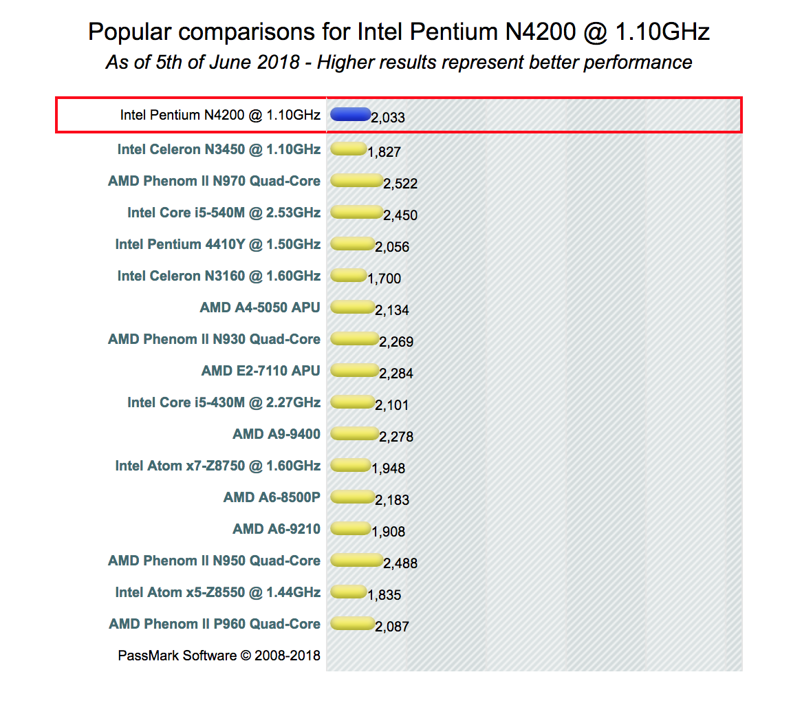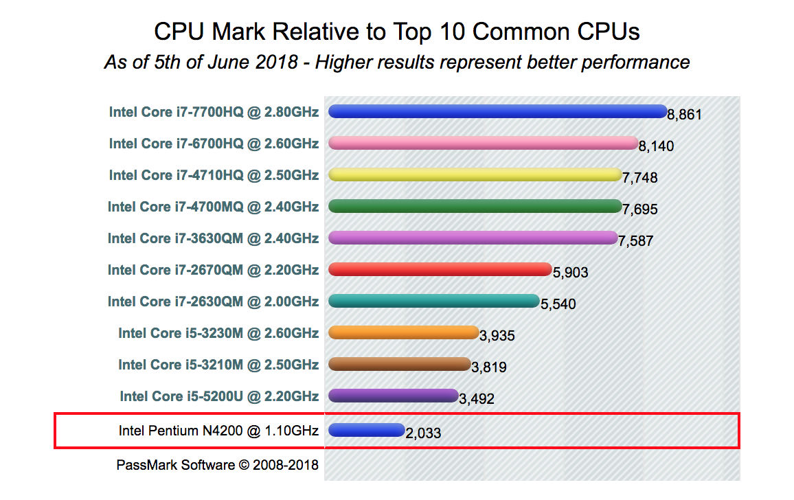 ✎ 펜티엄 N4200의 벤치마크 점수 [출처:PassMark]