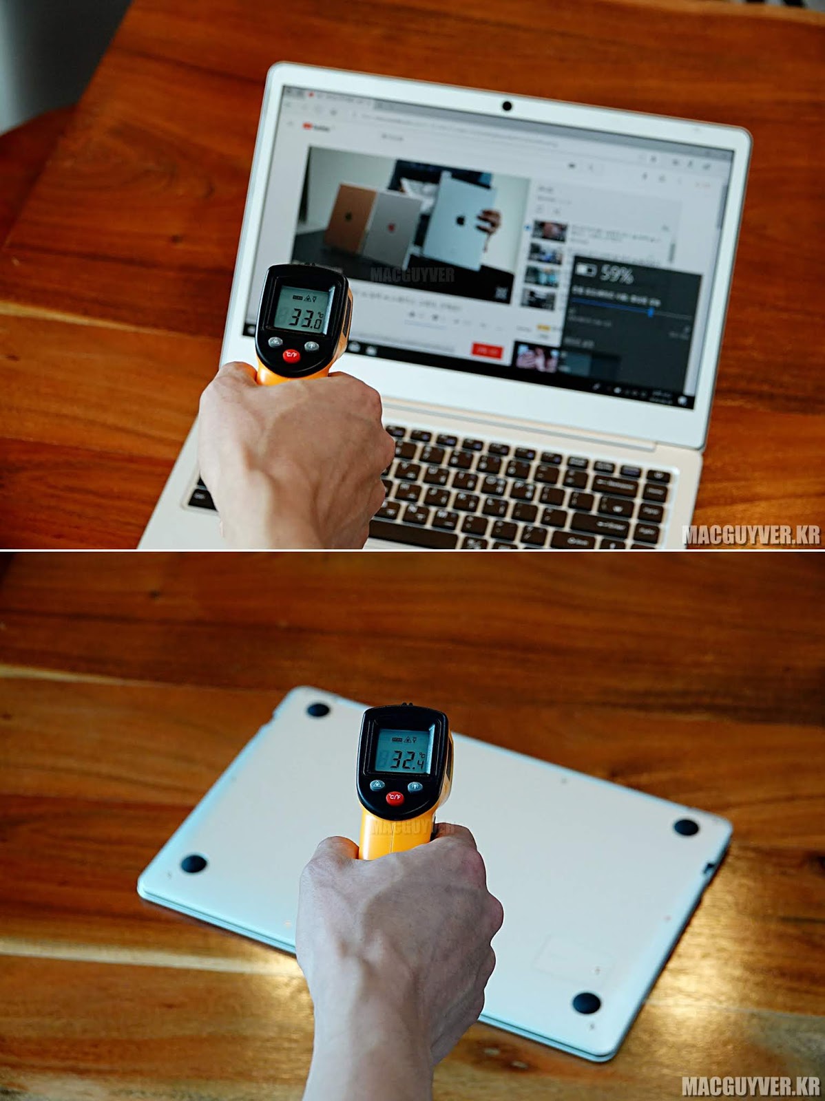 또 유튜브를 2시간 동안 재생한 결과, 발열도 거의 없다고 할 수 있었다. 기본 상태가 31도였는데, 2시간 이후 온도를 측정해보니 가장 높은 부분이 33도 후반에서 34도 초반 사이였기 때문이다.