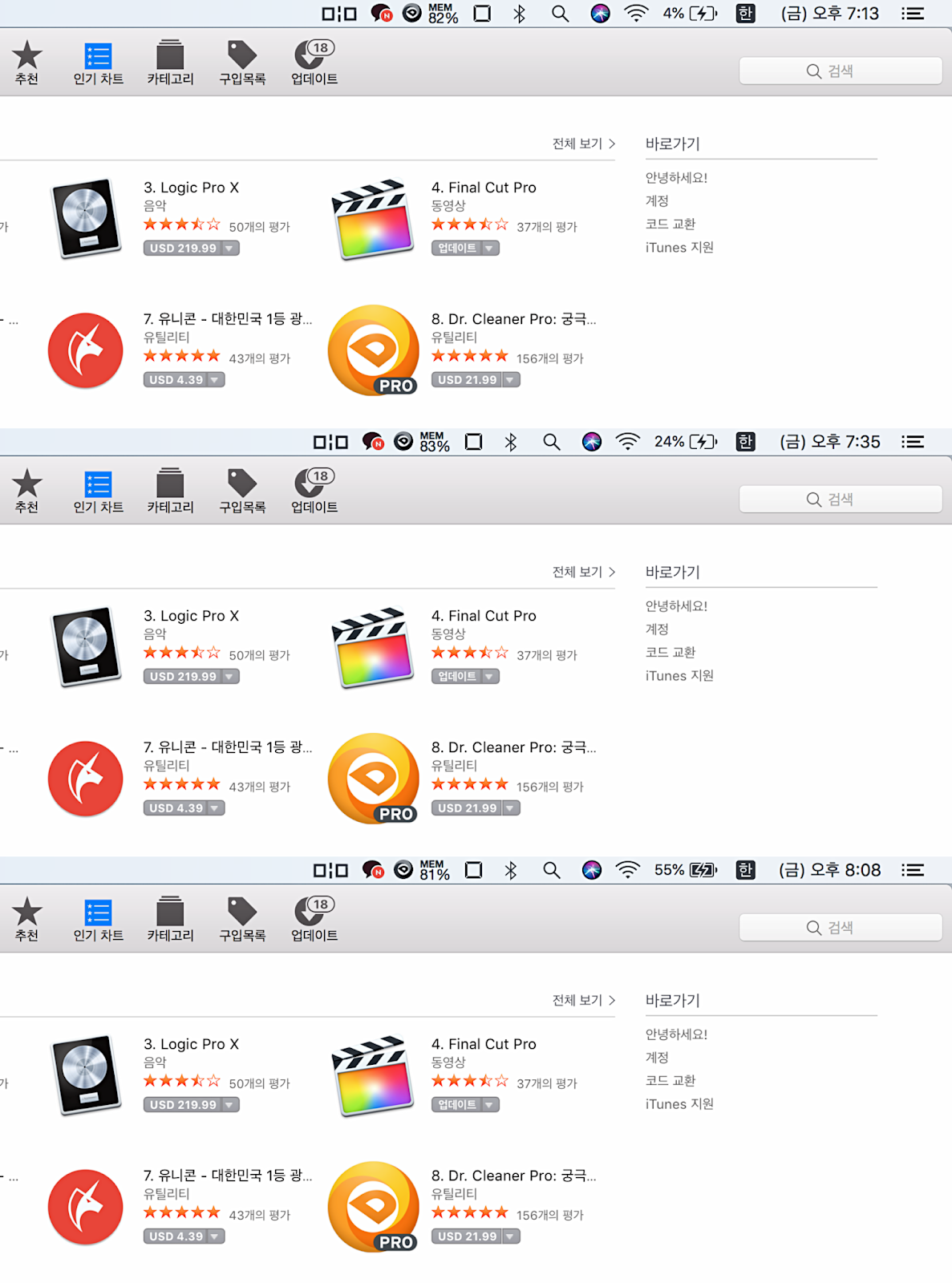 ✎ 다 죽어가던 뉴 맥북을 살려낸 위키오 보조배터리. 작업 중에 충전했음에도 1시간에 50%가 넘는 충전 속도를 보여줬다.