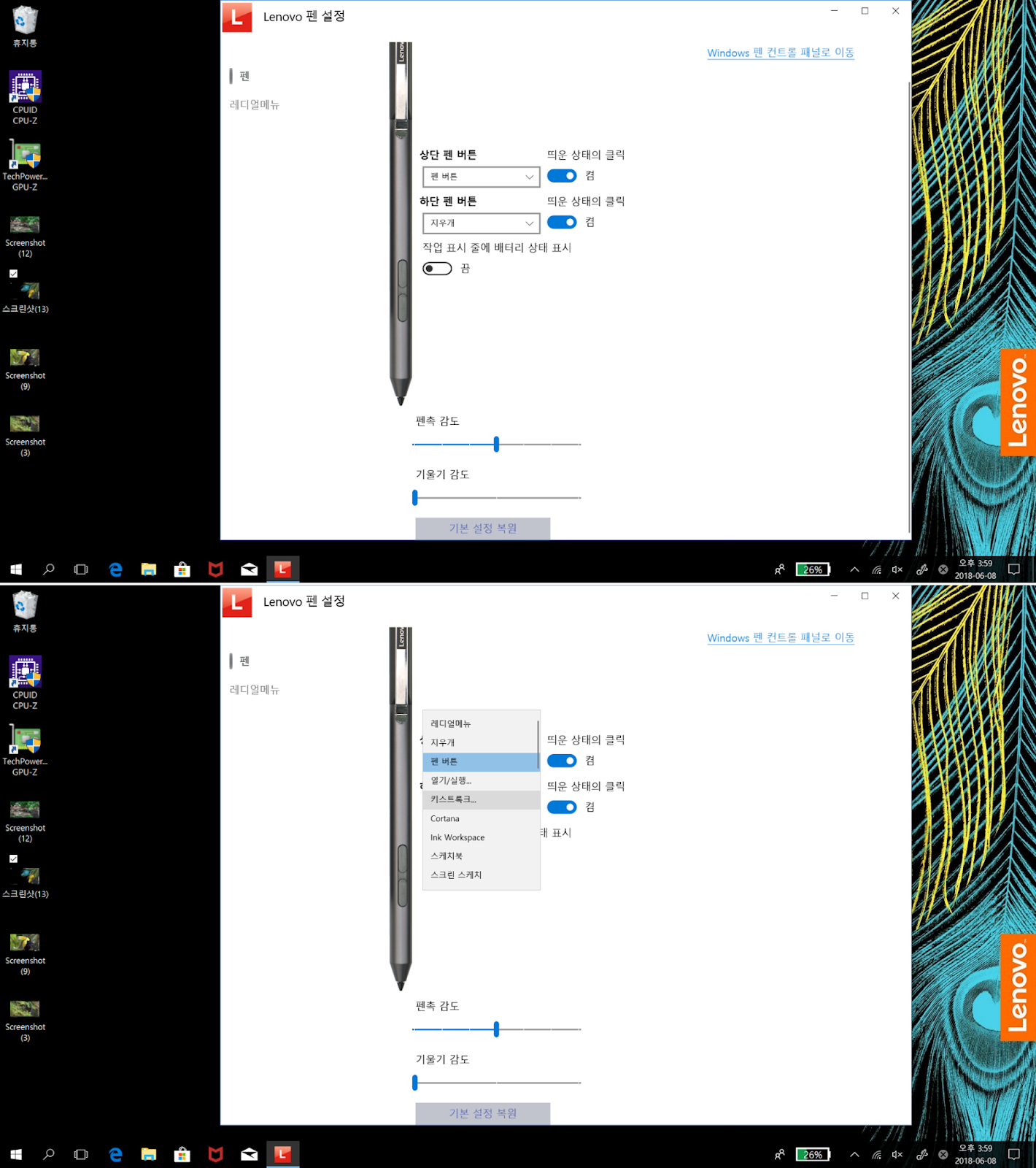 ✎ 스타일러스 펜의 버튼의 아주 다양한 기능들을 직접 커스텀할 수 있었다.