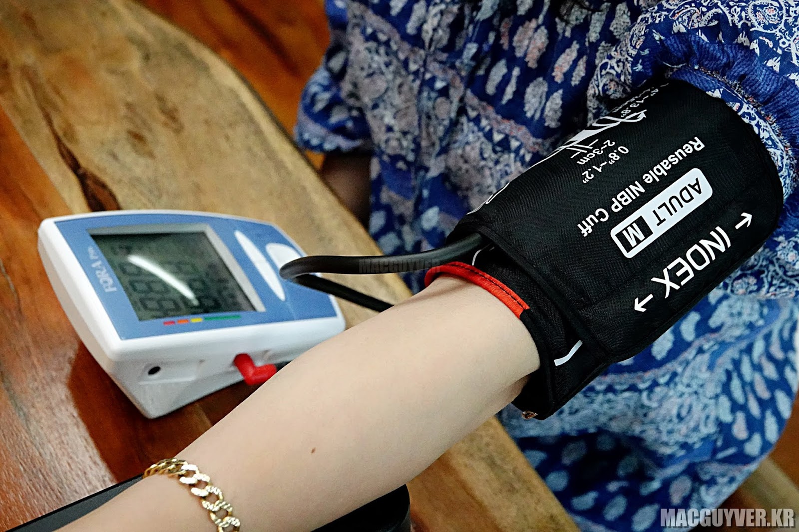 또한 팔과 커프 사이에 손가락 두 개 정도 들어가는 공간만 남겨두고 커프를 둥글게 말아 팔에 밀착시키면 된다. 이후, 측정을 시작하면 점점 부풀어 오르면서 혈압을 측정하는데, 마치 병원 기계로 재는 듯한 느낌이 들었다.