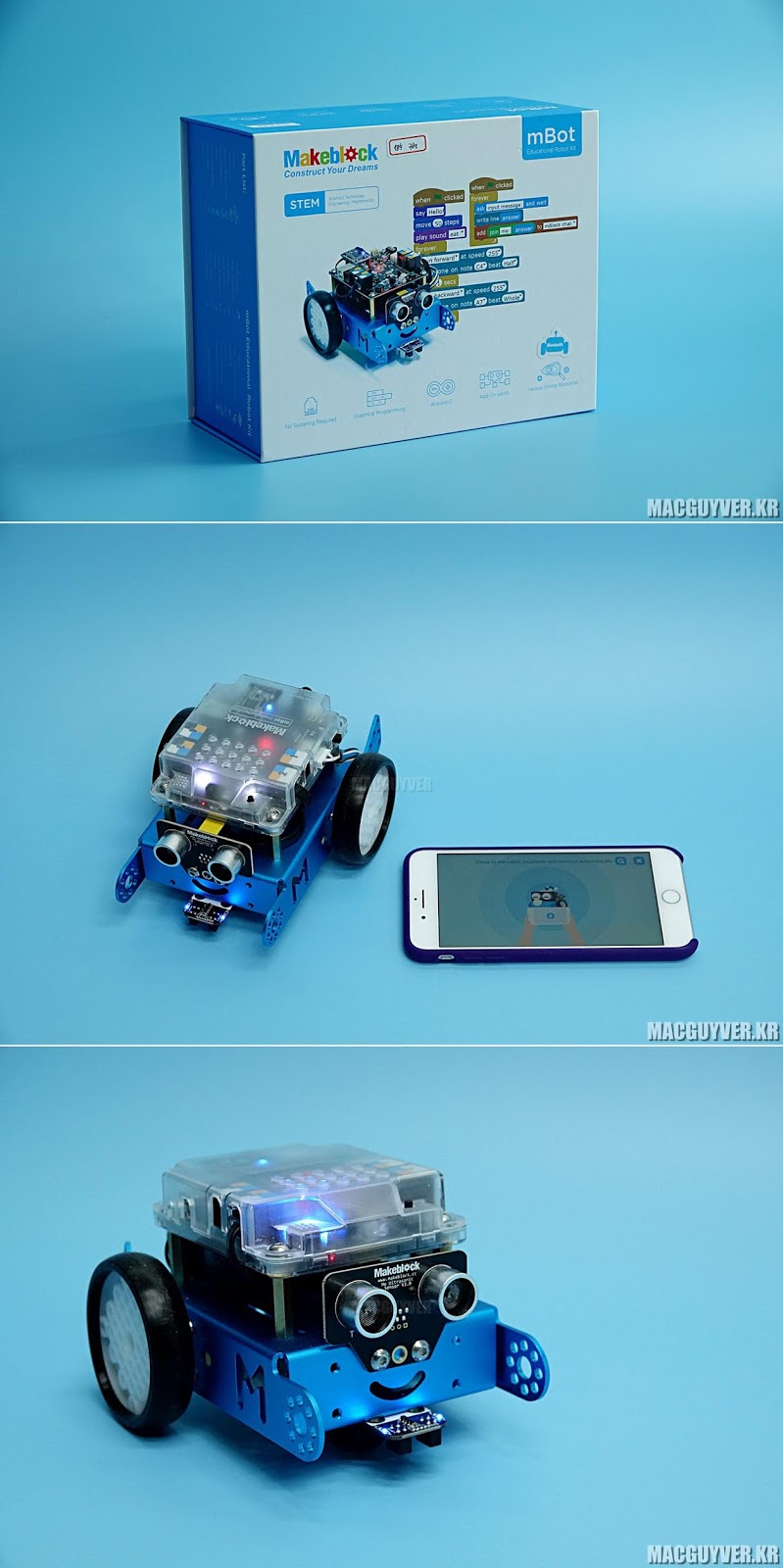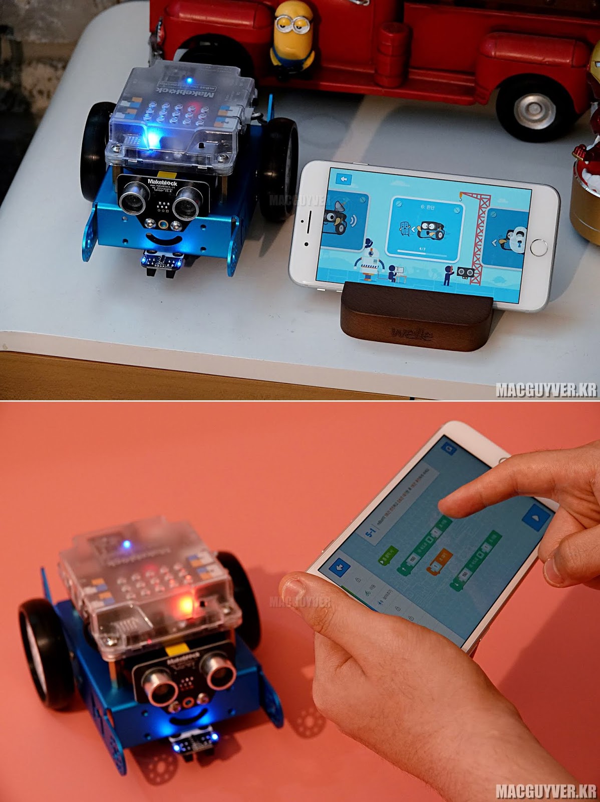 그리고 Makeblock과 mBlock이라는 전용앱을 사용하면 스마트폰으로 코팅 프로그래밍을 즐길 수 있다.