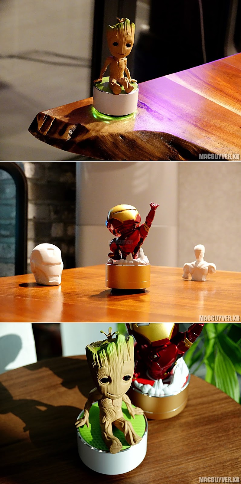 중요한 사운드의 경우는 두 제품이 살짝 달랐는데, 그루트 스피커는 전체적으로 깔끔한 음색이었고, 아이언맨 스피커는 조금 더 중저음에 집중된 느낌이었다.