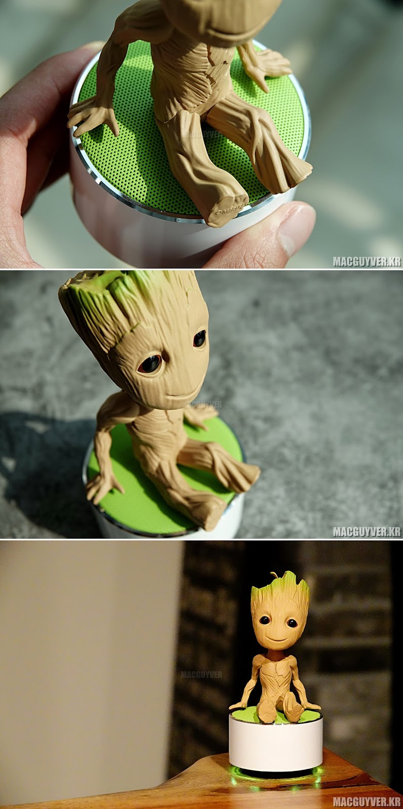 ✎ 그루트는 197g으로 아이언맨보다는 조금 가벼우며 음악 재생시 녹색 LED가 반짝이고 저음 비트에 따라 머리 위의 나뭇가지가 흔들리는 귀여운 모습을 볼 수 있다.