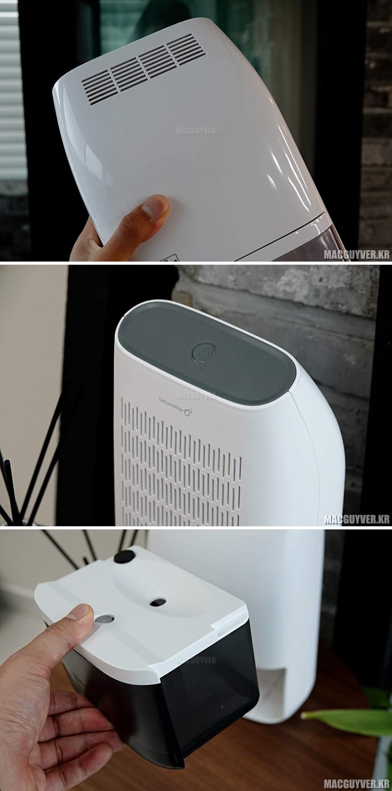 큰 용량의 제습기와 비교시 소음이나 소비전력, 이동성 면에서 유리했는데 특히 제습기 작동시 나오는 더운 공기가 나오지 않아 답답하지 않게 사용할 수 있었다.