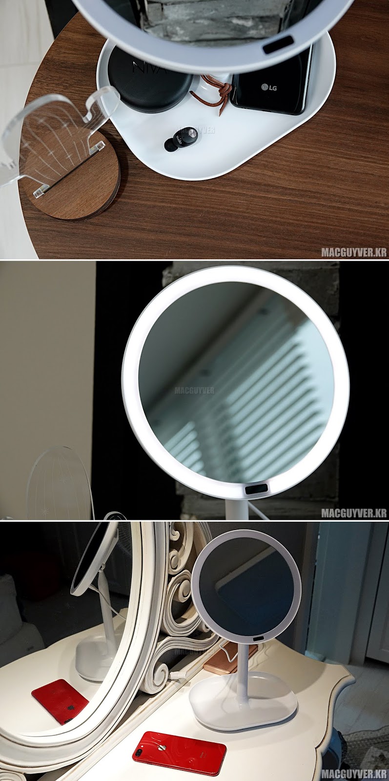 ✎ 수납이 가능한 트레이에 여러 악세서리 등을 수납할 수 있었고, 부드러운 화이트 LED로 눈이 부시지 않았다.