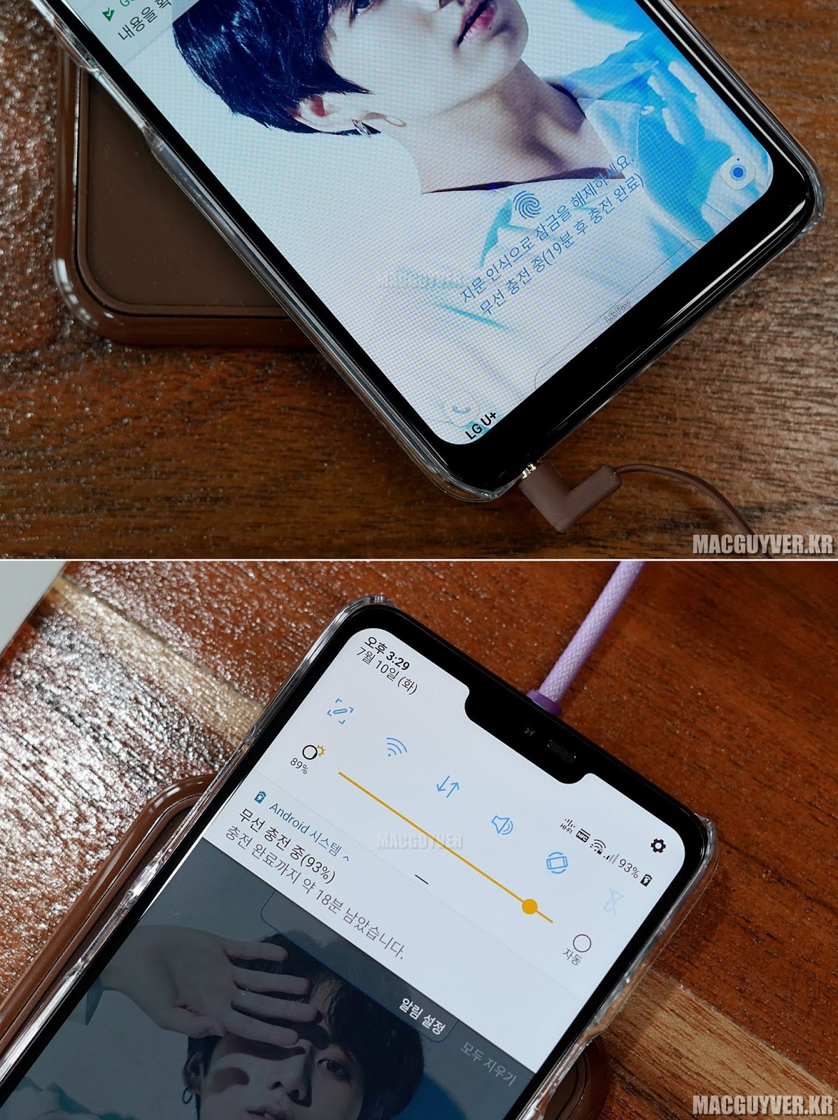 ✎ 역시나 G7에 걸맞는 고속 무선충전을 지원하지는 않는다. 물론 G7의 고속 무선충전 기준이 상당히 높기 때문에 일반 스마트폰엔 고속 무선충전이라고 표시가 될지도 모르겠지만, 일단 현재는 서랍 속에 있다.