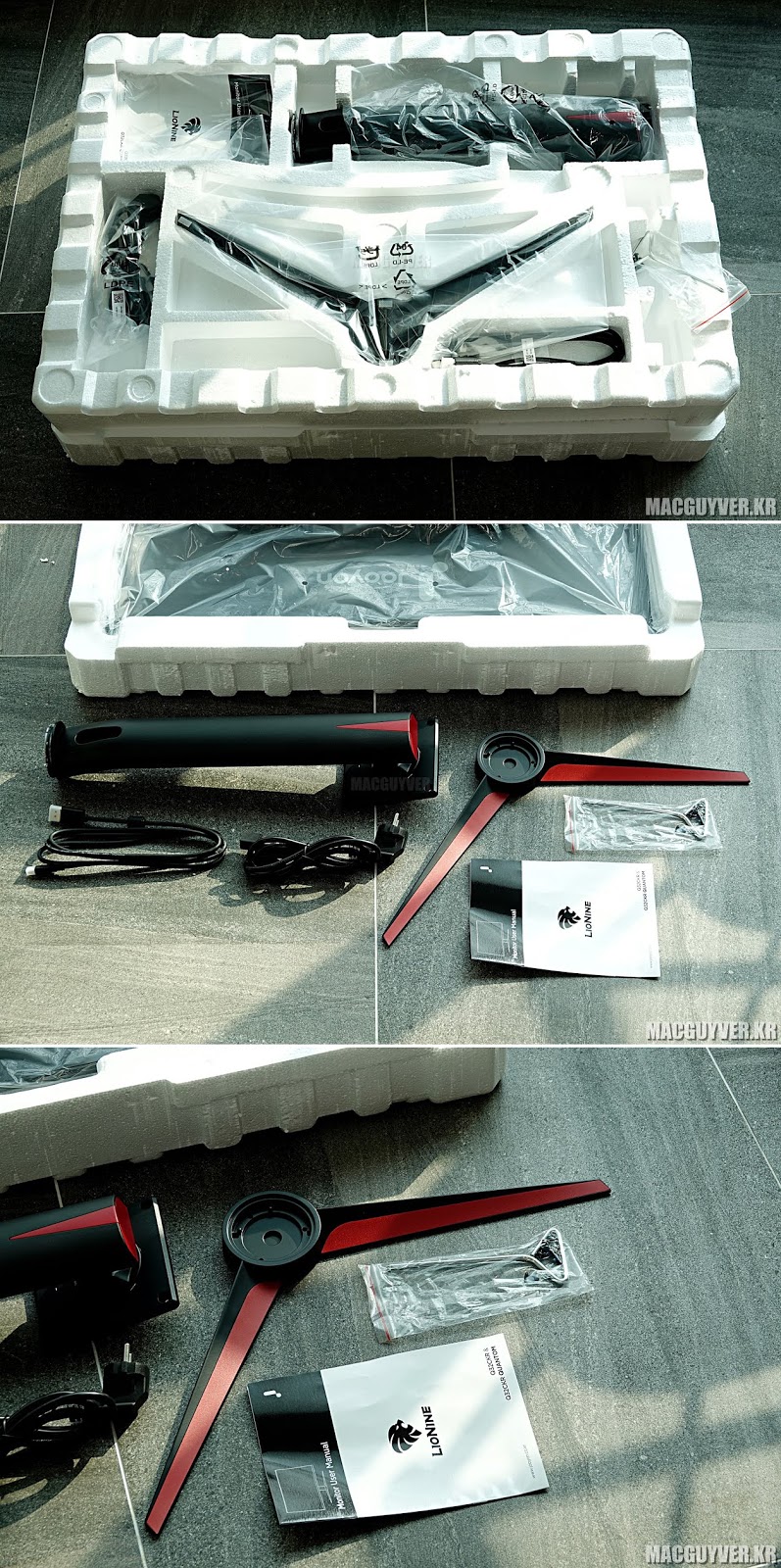 ✎ 알찬 구성품이 꼼꼼하게 포장되어 있는주연테크 리오나인 Q32CKR 게이밍 모니터