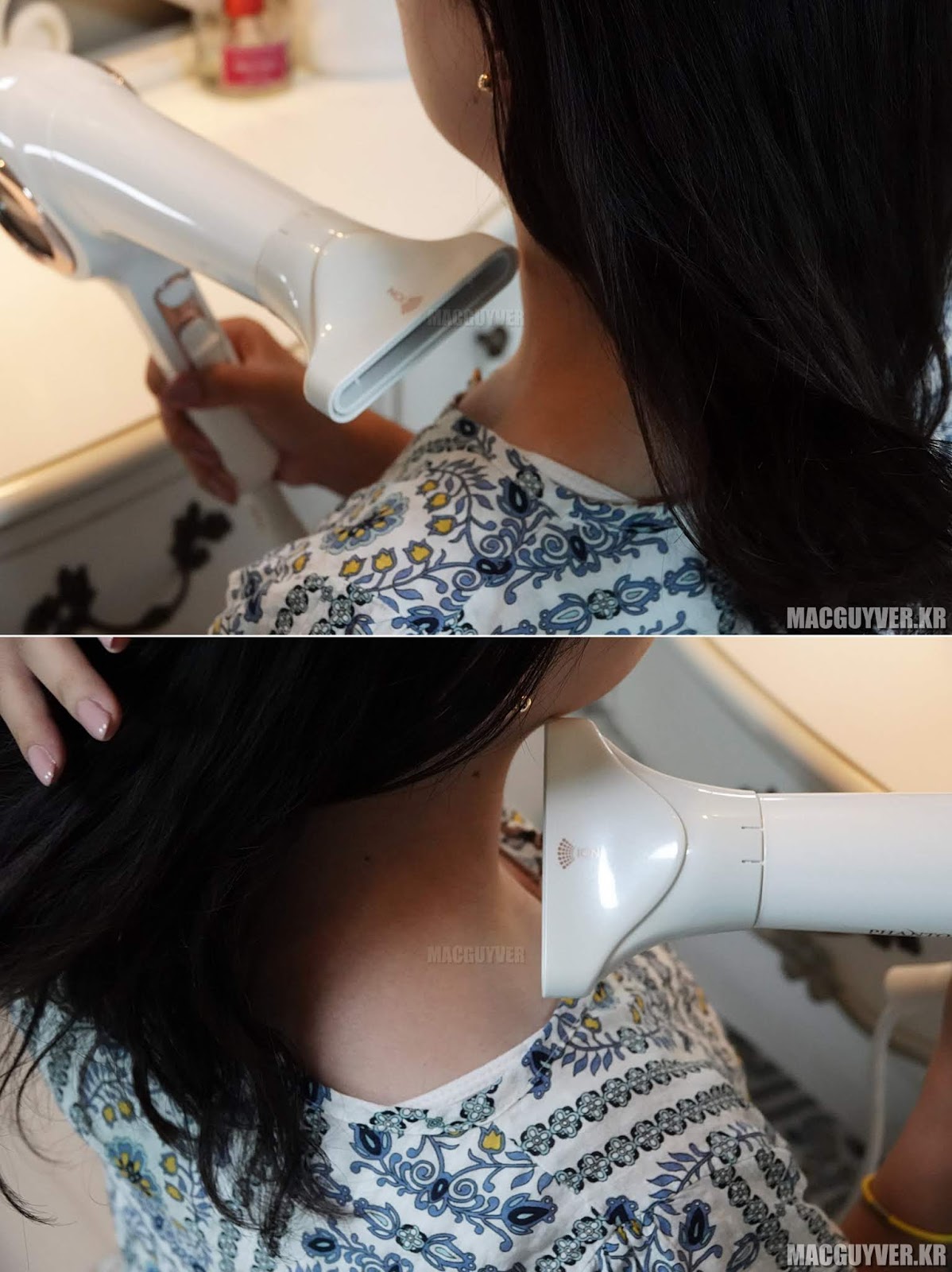 또한 이중 노즐로 화상을 예방해줬고, 3단계 및 완전 냉풍을 통해 시원한 바람으로 머리를 말리는 것도 가능했다.