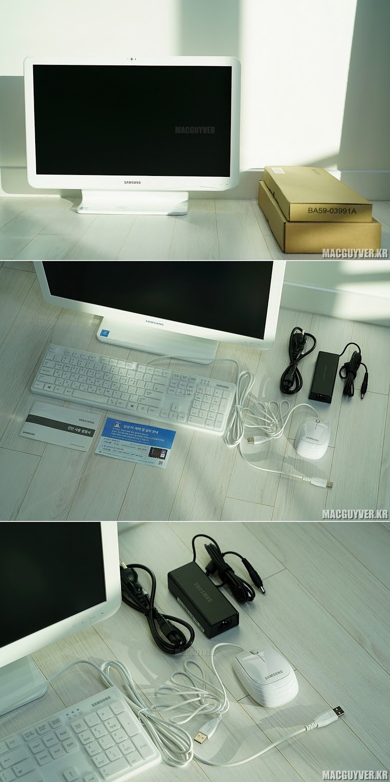 ✎ 삼성 일체형PC의 구성품. 유선 마우스와 유선 키보드가 조금 아쉬웠다.