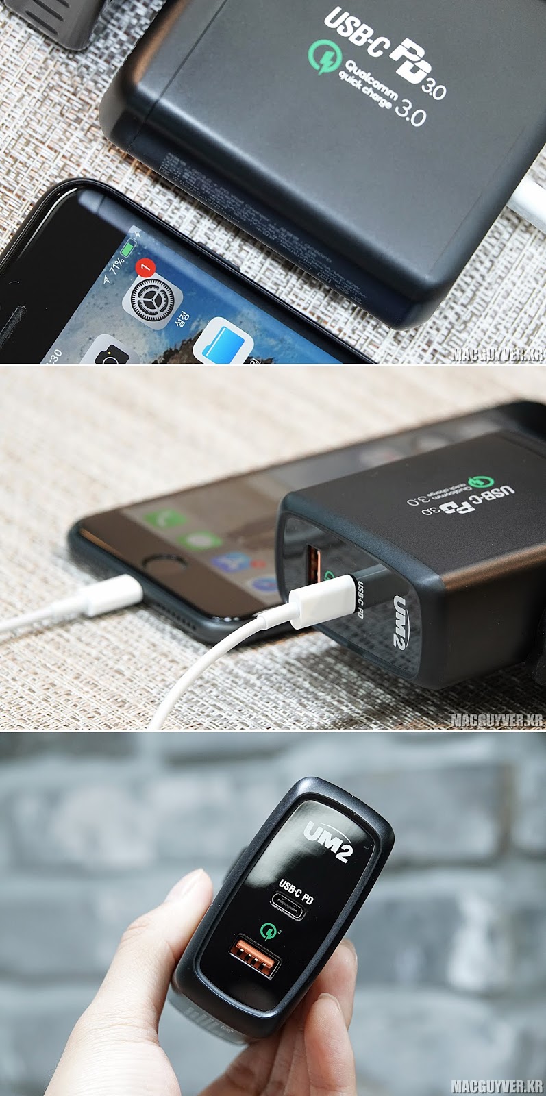 그리고 UM2 고속멀티충전기 QC60PD는 가격대가 굉장히 합리적이기 때문에, PD 충전을 지원하는 멀티 충전기를 찾는 분들에게 추천해줄 만한 선택지가 될 수 있을 것 같습니다. - MACGUYVER.