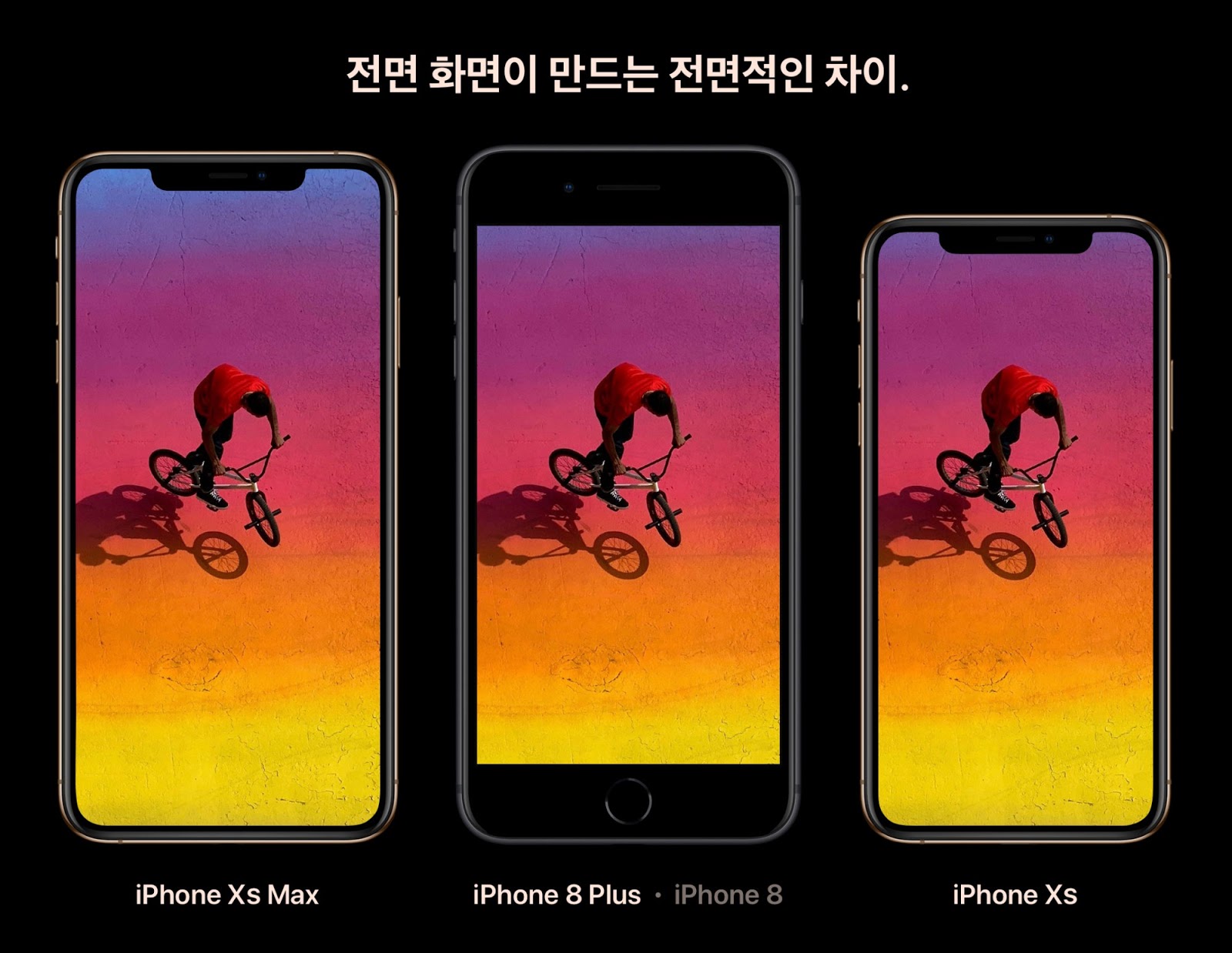 아이폰Xr은 알루미늄으로 아이폰8 시리즈의 계보를 잇고 있지만, 아이폰Xs는 스테인리스 스틸로서, 아이폰X의 계보를 그대로 이어왔기 때문이죠.