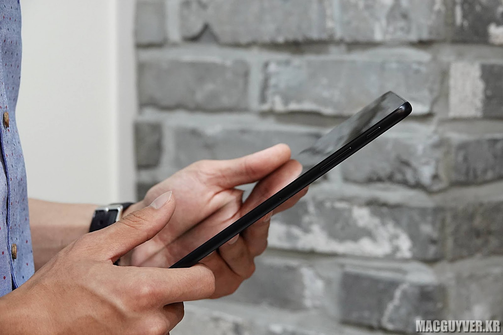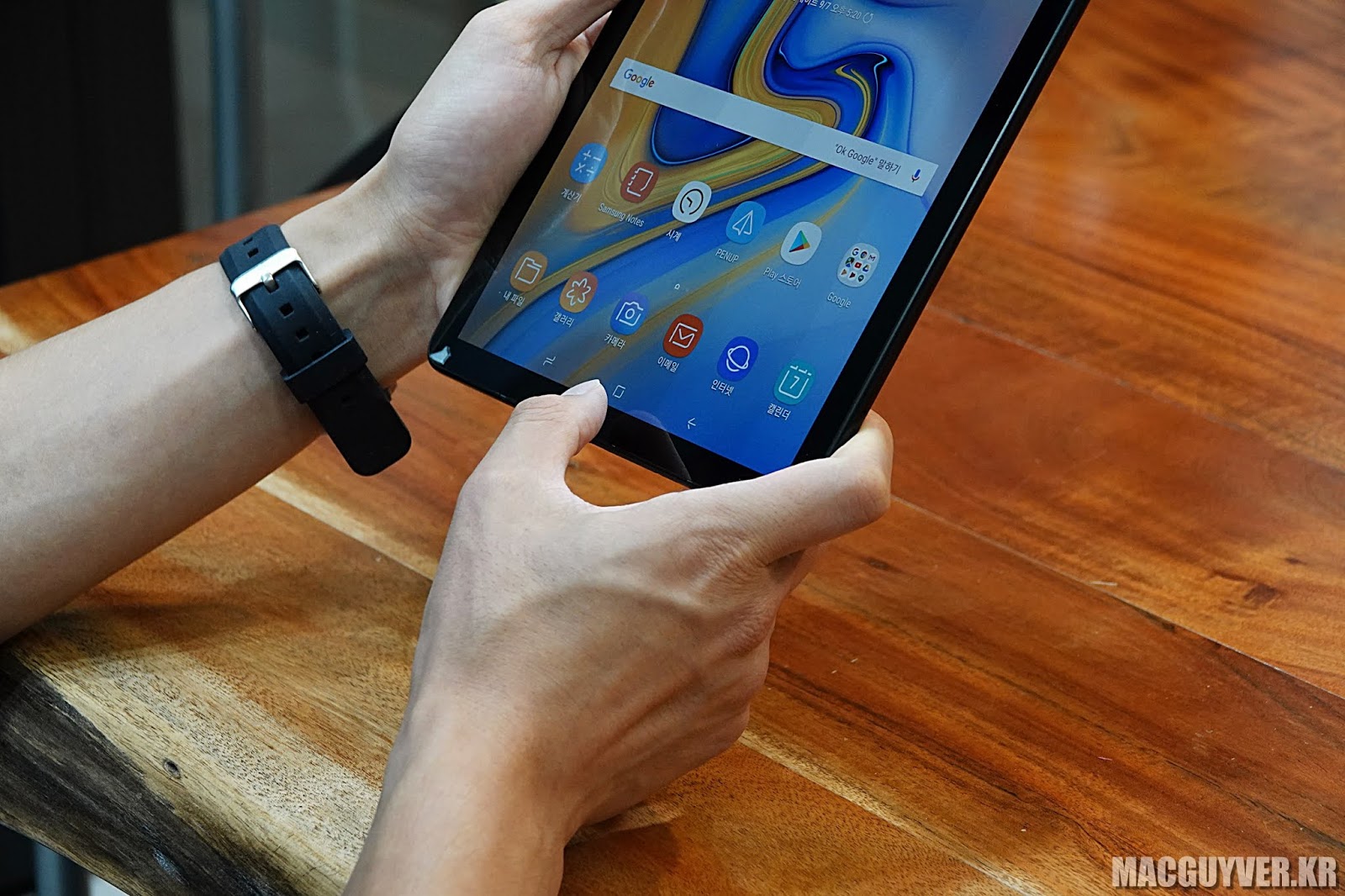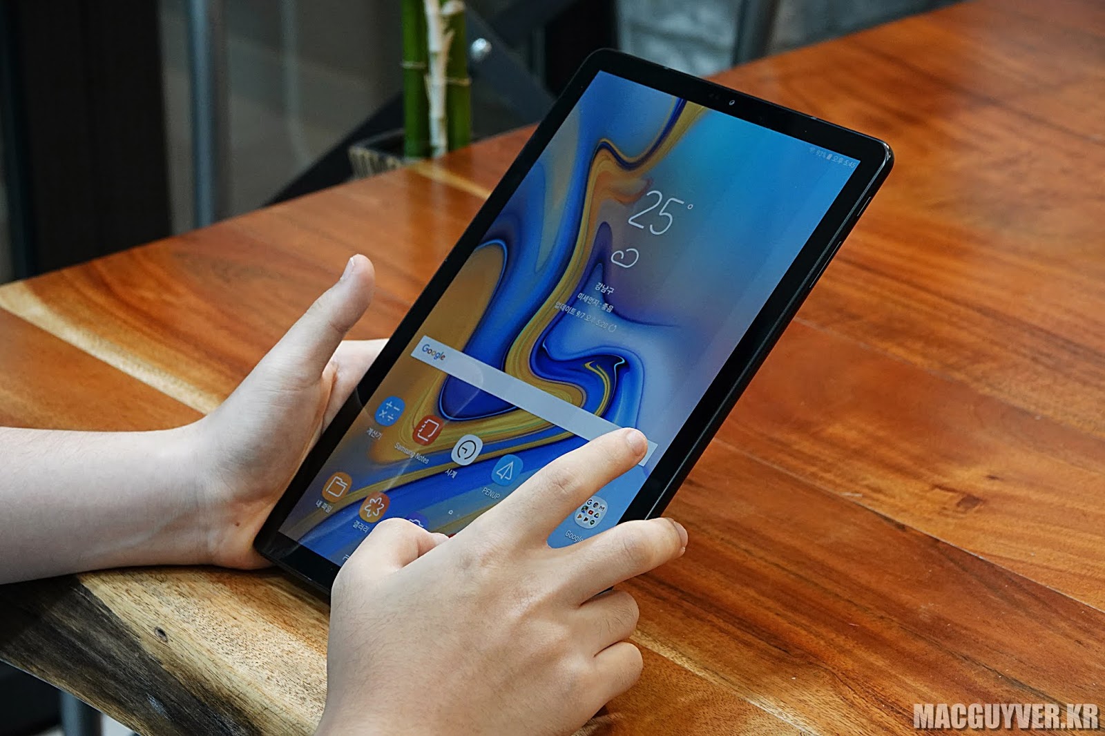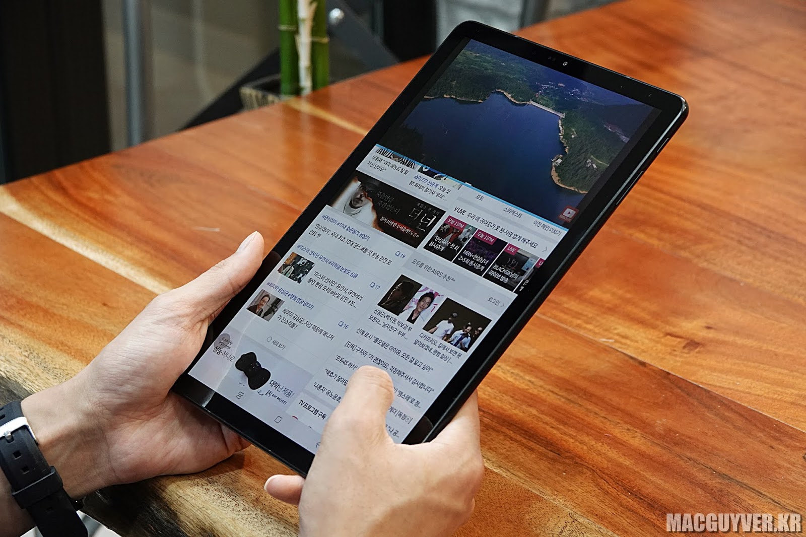 손에 들고 사용하는 비중이 더 큰 스마트폰과 달리, 태블릿은 테이블이 놓아두거나, 혹은 가로로 들고 사용하는 경우도 많이 있잖아요?