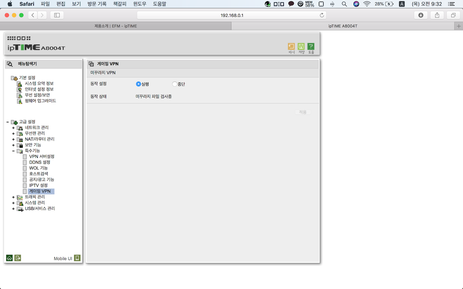 아이피타임 와이파이 공유기들은 다양한 고급 기능들을 사용할 수 있는데요. VPN 기능도 당연히 포함하고 있습니다.