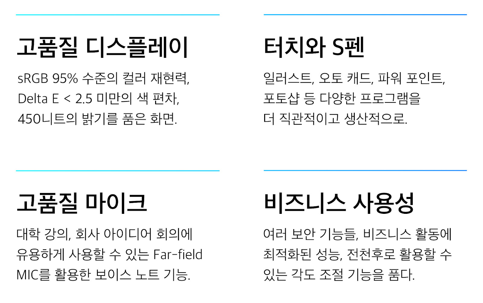 ✎ 터치 인터페이스의 반응속도가 굉장히 빨라 만족감을 주었으며, 고품질 디스플레이, S펜 덕분에 완성도가 높았던 노트북