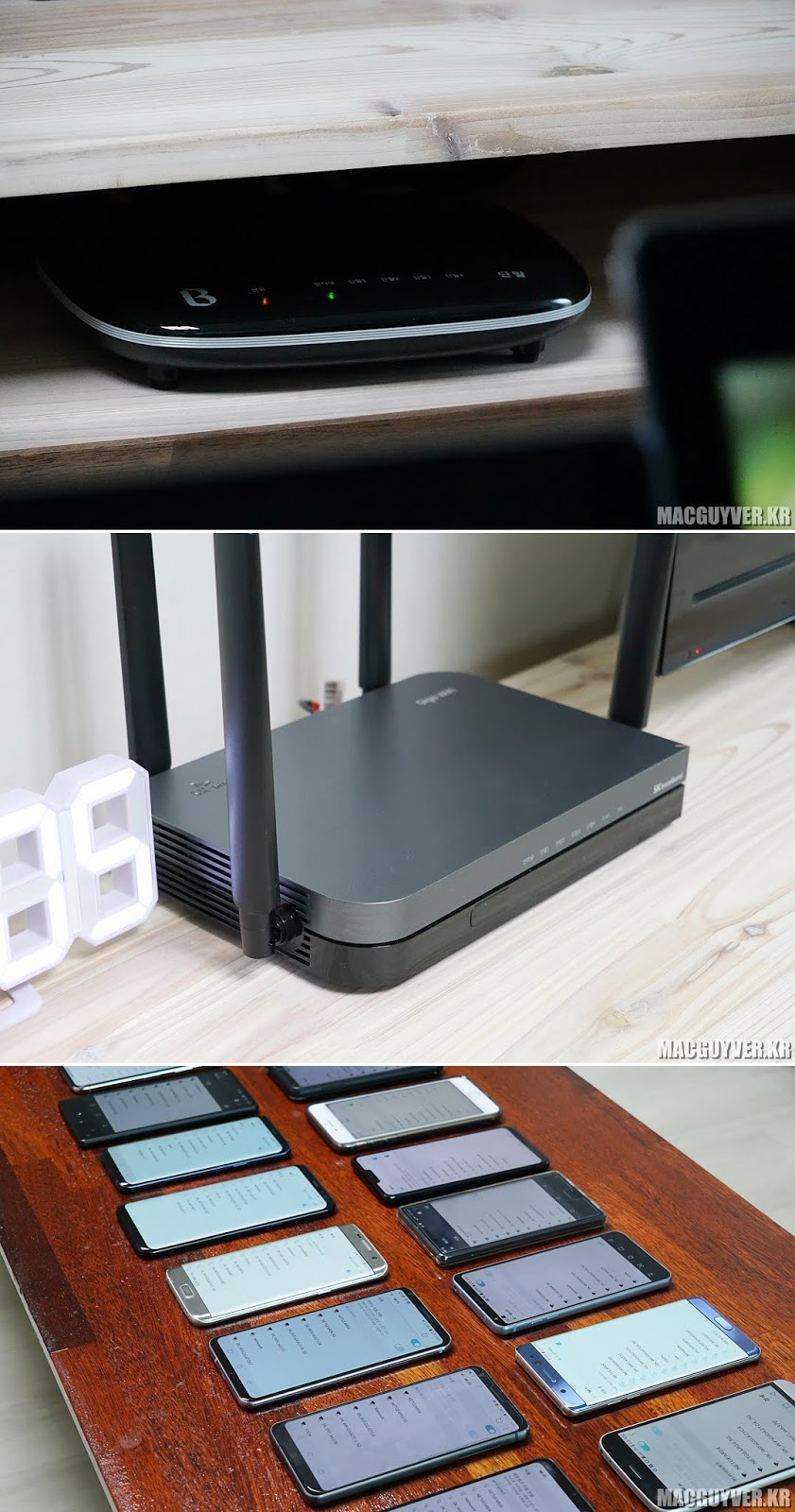 ✎ 속도 체감을 위해 20대의 스마트폰과 7대의 노트북 및 태블릿을 한 번에 연결했습니다.