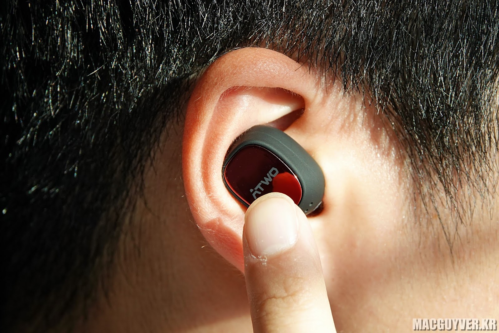 이어폰의 크기는 동전 크기라 가볍고 깔끔한데요. 귀에 안정적으로 착용이 가능했습니다.