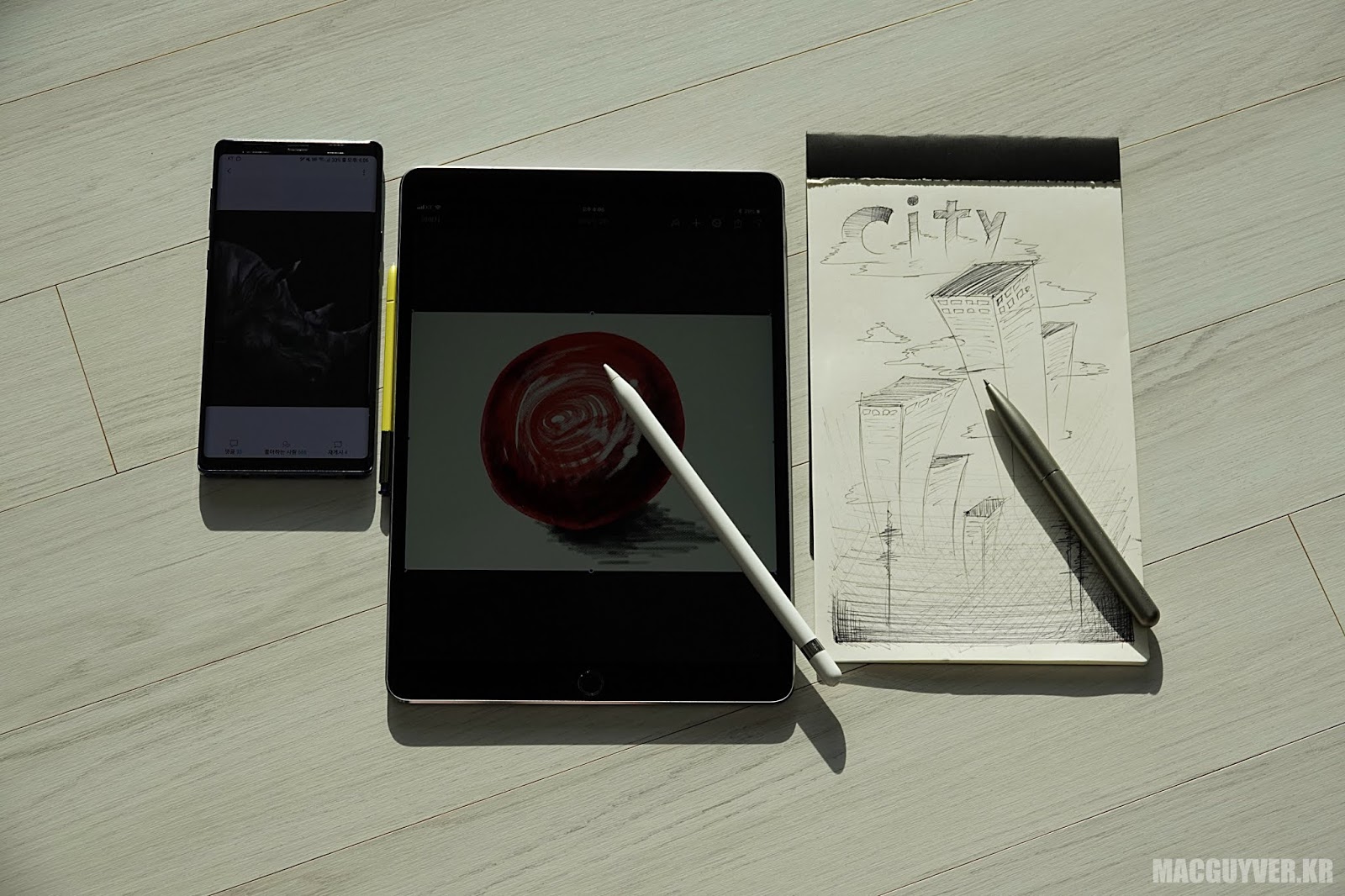 마지막으로 애플 펜슬은 아쉽게도 유리 위에 스케치를 하는 느낌이 많이 들어서 필기감만 놓고 보자면 아쉬운 3등을 하고 말았습니다.