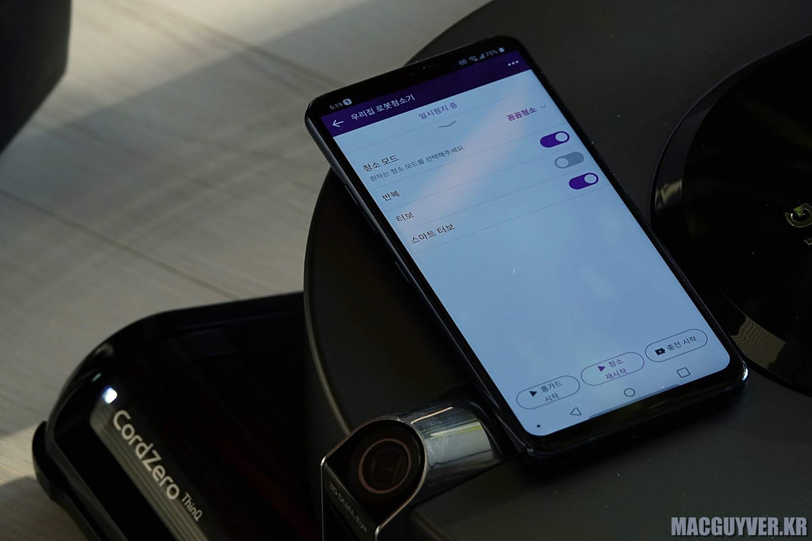 그리고 직접 LG 코드제로 R9 씽큐의 카메라로 보면서 조작을 할 수도 있기 때문에 고양이와 같은 반려동물과 놀아줄 수도 있고, 원격 조종으로 청소를 하는 것도 가능해진다.