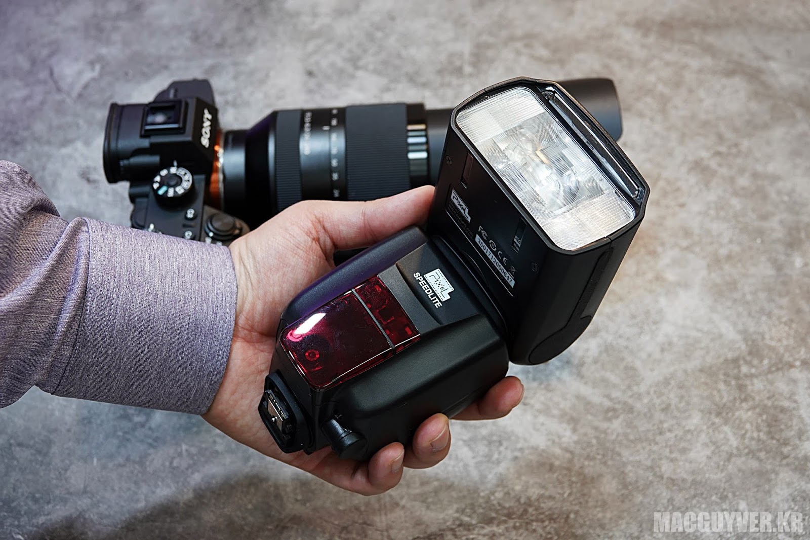 직접 사용해본 픽셀 X800S 스탠다드 소니 스트로보는 400g이 넘는 무게가 카메라에 더해지는 것이기 때문에 무게는 어쩔 수 없이 증가했습니다.