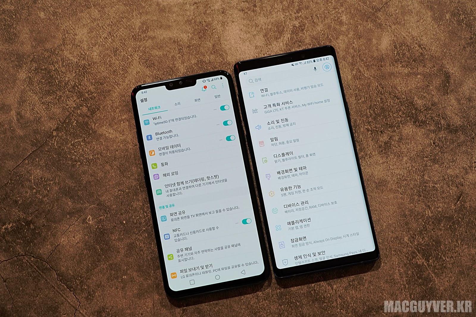 그 점에서 엘지의 공식 이미지가 '잘못'한 것 같습니다. 실물이 깡패였는데요. 갤럭시노트9도 나쁘지는 않습니다. 측면이 매트한 느낌이라 부드럽게 측면을 사용할 수 있었기 때문이죠.