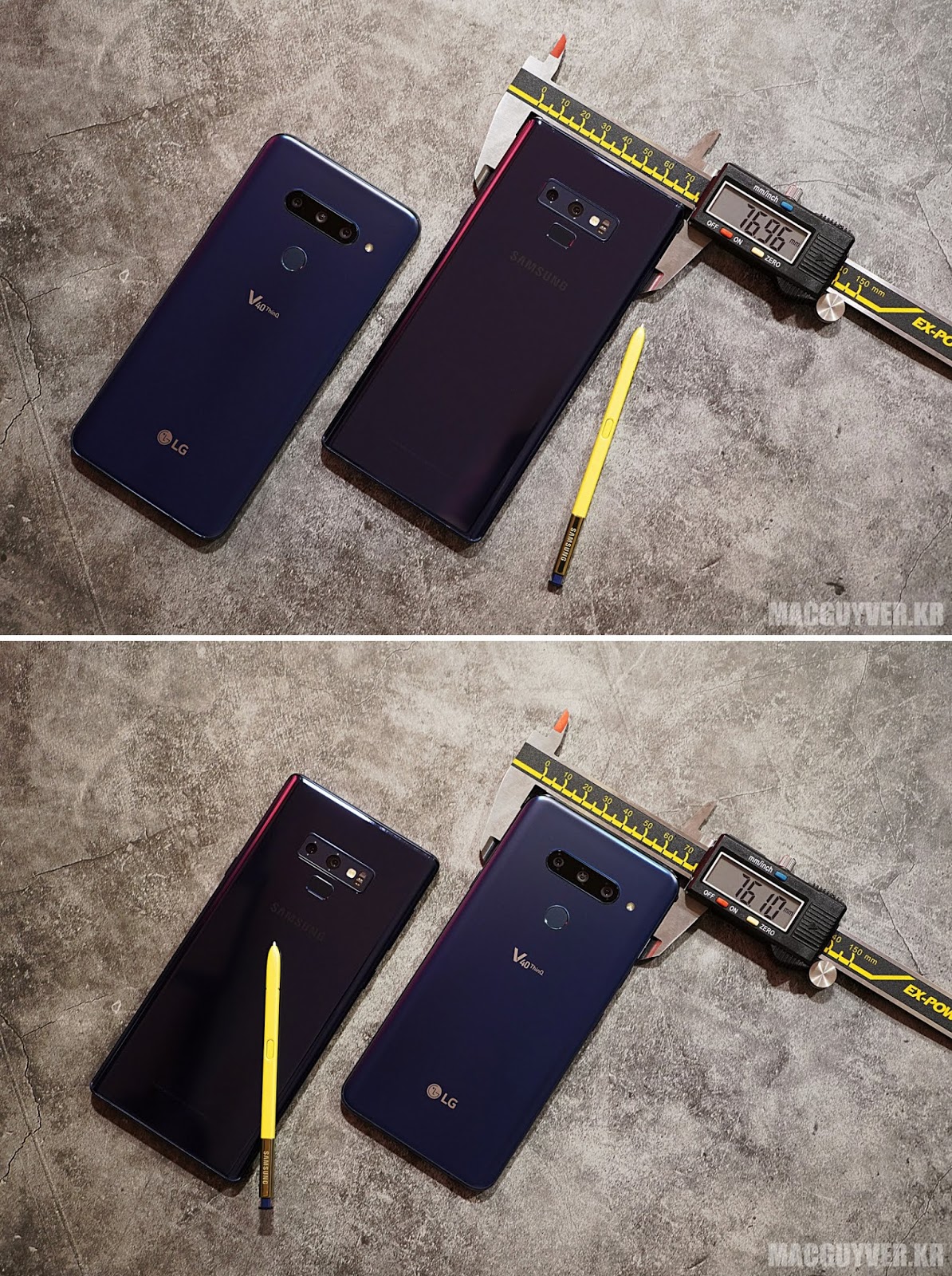 ✎ 두께는 갤럭시노트9보다 V40이 조금 더 얇습니다.