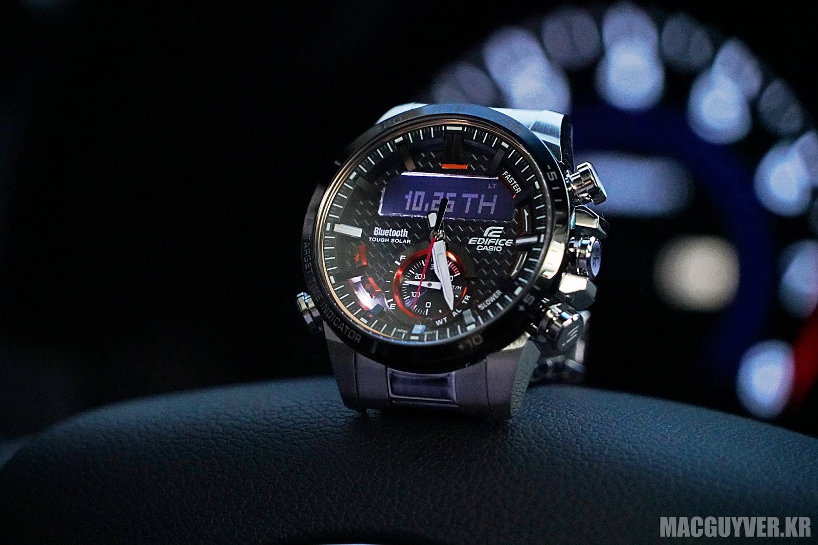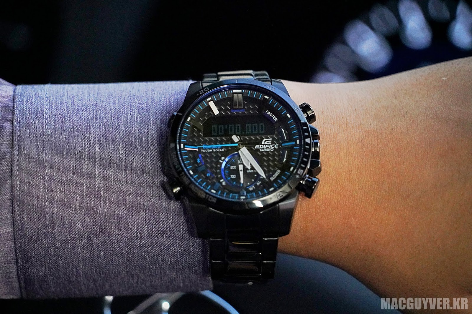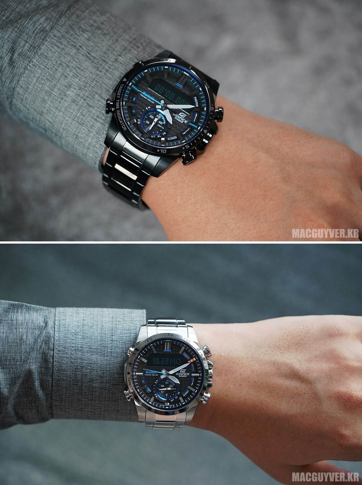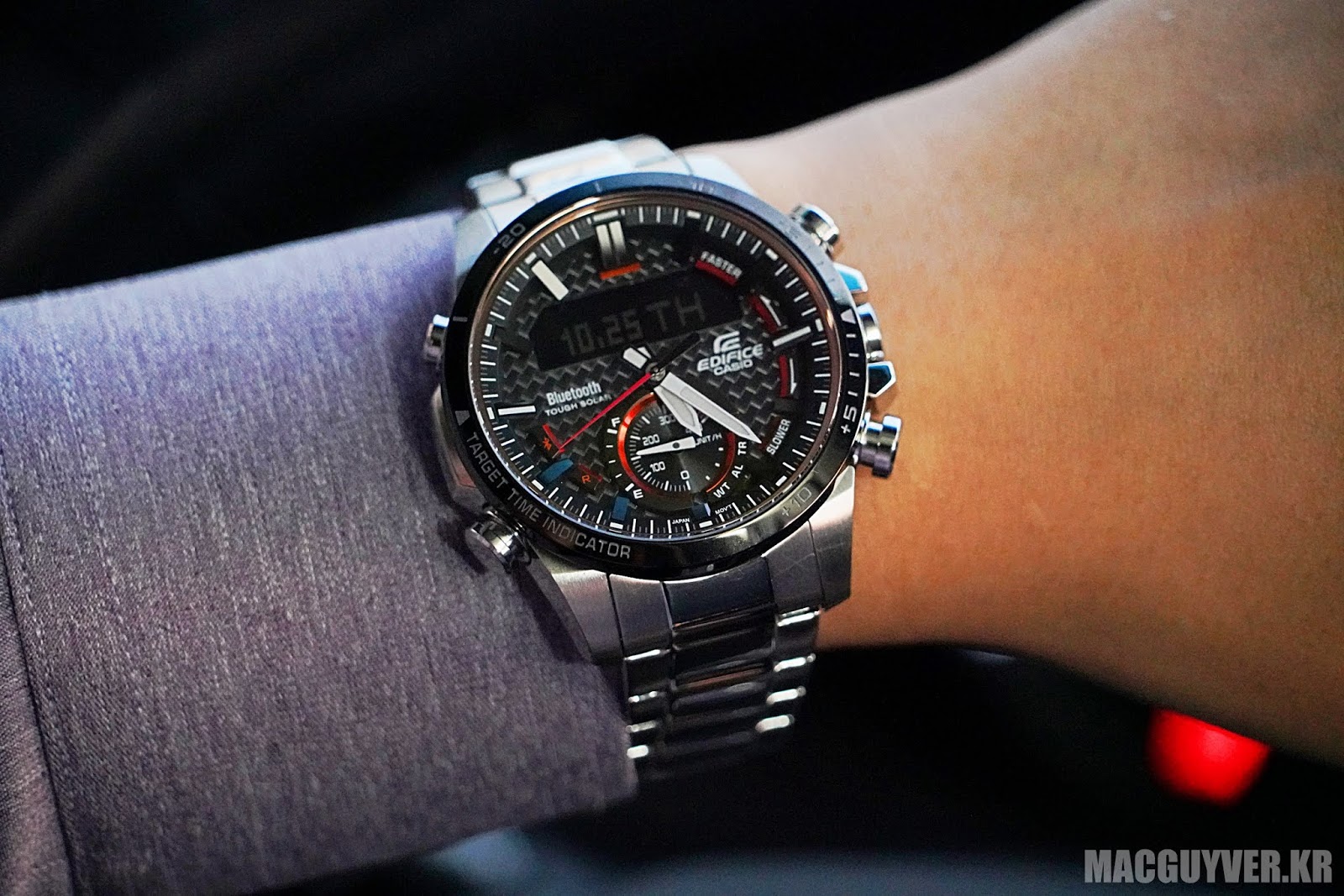 블루투스 디지털 아날로그 컴비네이션은 여느 클래식 워치에서는 만나보기 힘든 조합이기 때문에 디지털과 아날로그의 장점을 더한 ECB-800은 색다른 경험을 선사해준다.