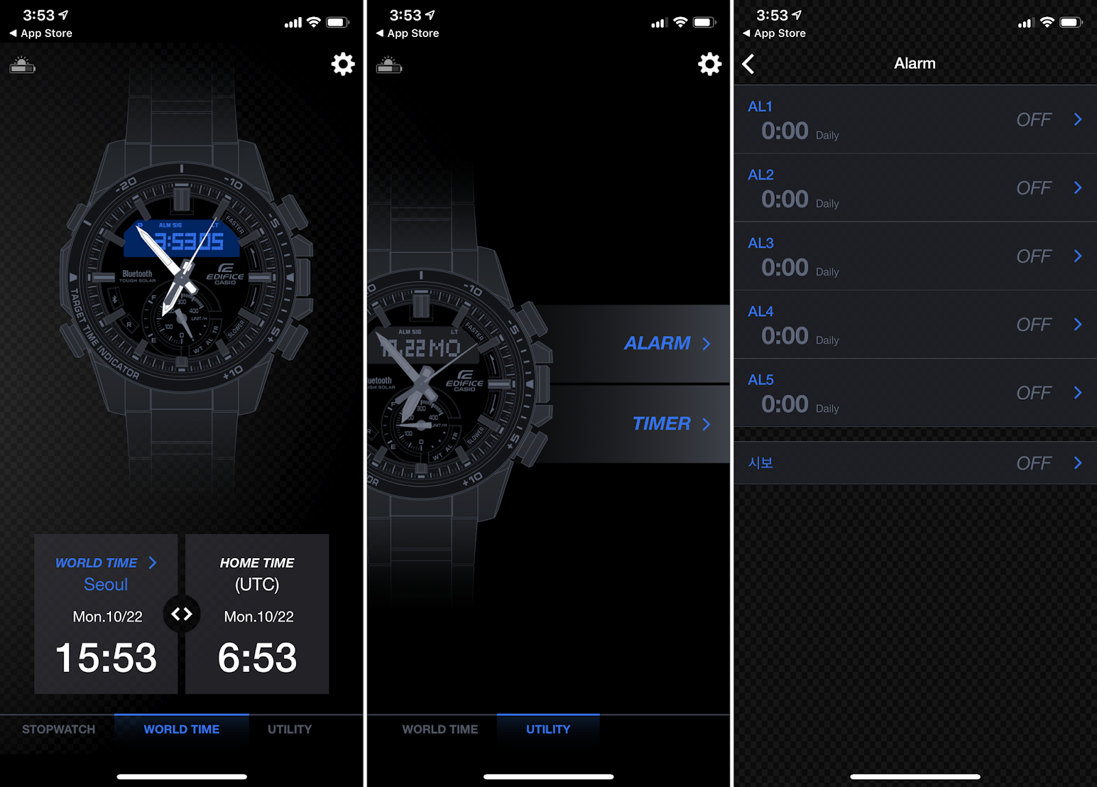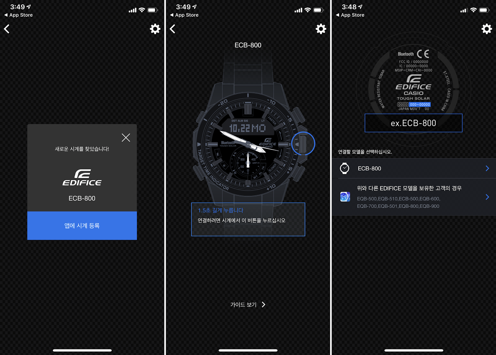 이러한 기능을 활용하기 위해서는 'EDIFICE CONNECTED'를 다운로드해서 연동하는 과정이 필요하다.