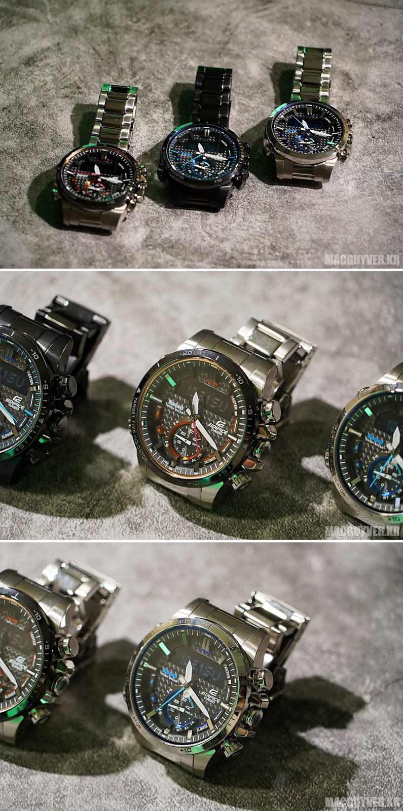 메인이라 부를 수 있는 에디피스 ECB-800DB-1ADR은 짙은 메탈의 느낌을 가진 오렌지 컬러를 중심으로 카본 파이버 다이얼이 돋보이는 디자인으로 마무리 했다.