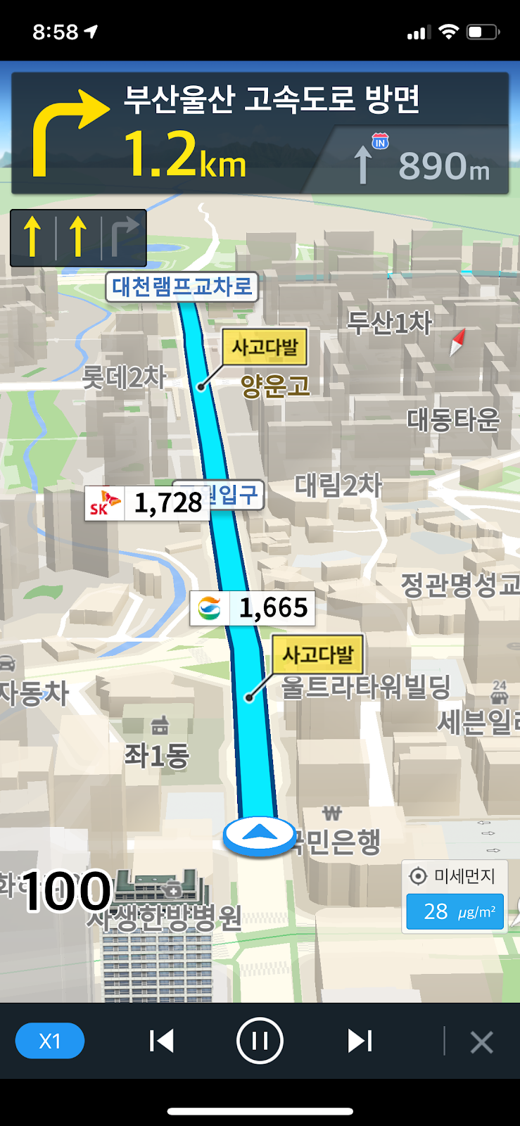 아틀란3D는 다른 내비어플들 보다 시인성에 특화가 되어 있는 것으로 유명하죠. 게다가 미세먼지 농도를 실시간으로 알려주어, 가을 단풍놀이나 주말나들이 때 유용하게 사용할 수 있습니다.