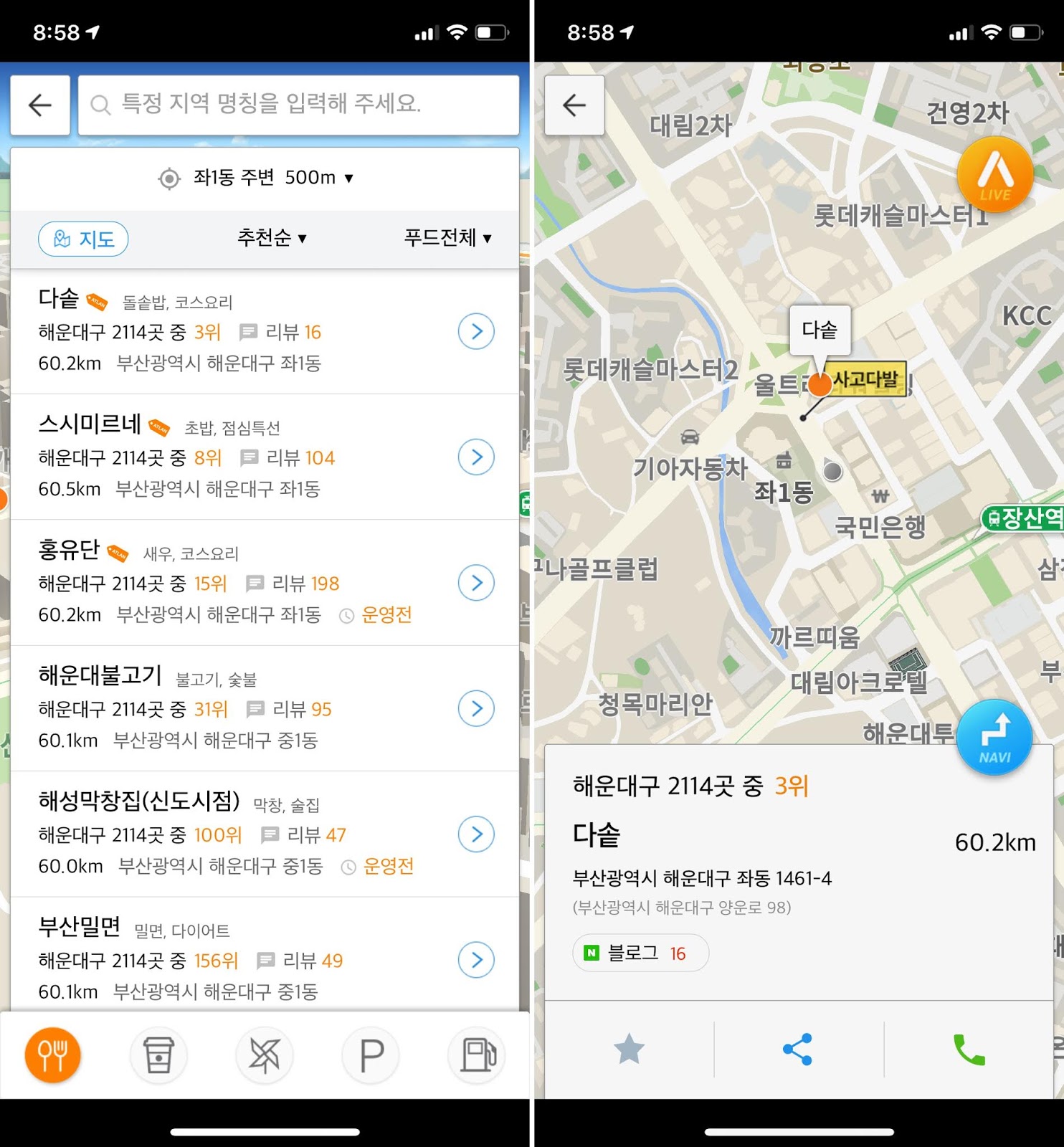 지금까지도 애용하고 있는 아틀란3D는 완전 무료 내비게이션일 뿐 아니라, 빅데이터를 이용해서 맛집과 카페, 가까운 주차장, 최저가 주유소까지 찾아주는 '아틀란 LIVE' 기능을 제공하는데요.