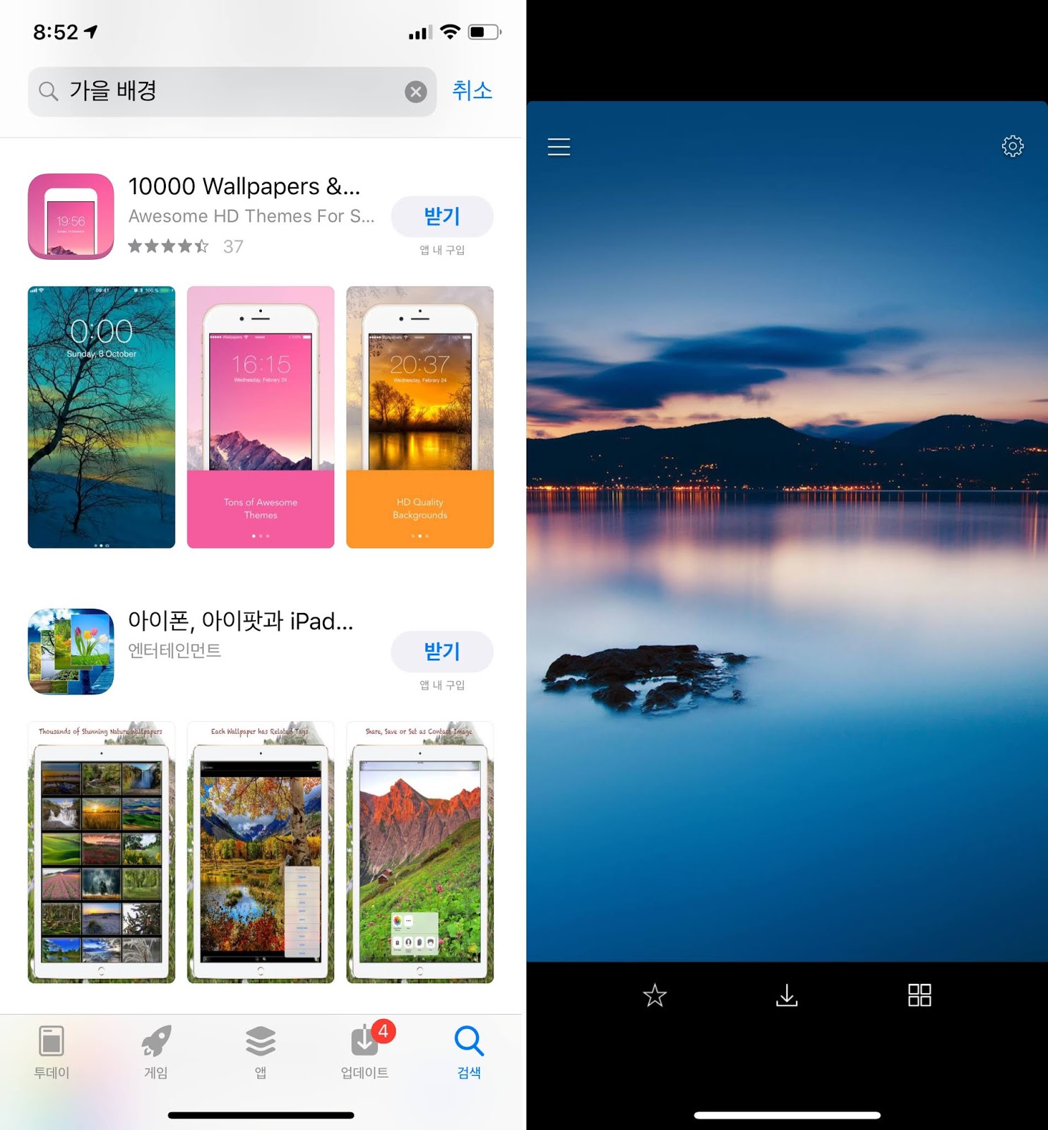 예를 들어, 하나의 배경화면 앱을 선택해서 실행을 하게 되면 수많은 배경화면이 나타나게 되고, 가을 느낌이 물씬 나는 꽃으로 혹은 단풍으로 배경을 바꿔볼 수 있는 것이죠.