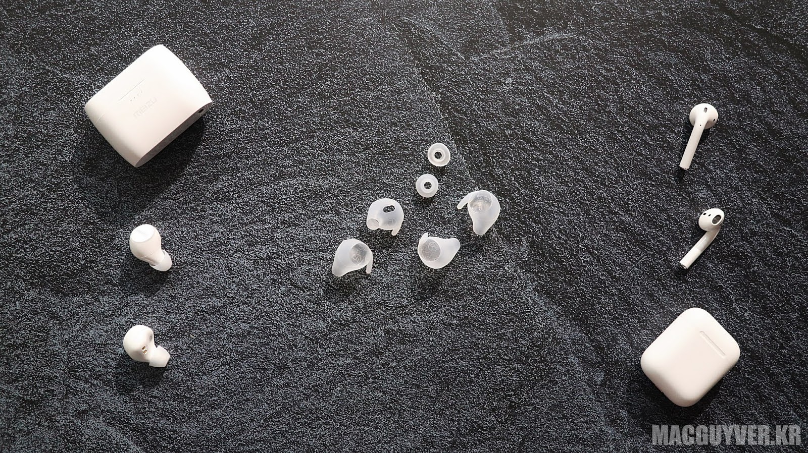 이어버드 역시 에어팟보다는 큰 편이지만 다양한 이어팁을 제공해서 귀에 꼭 알맞게 착용이 가능했습니다.
