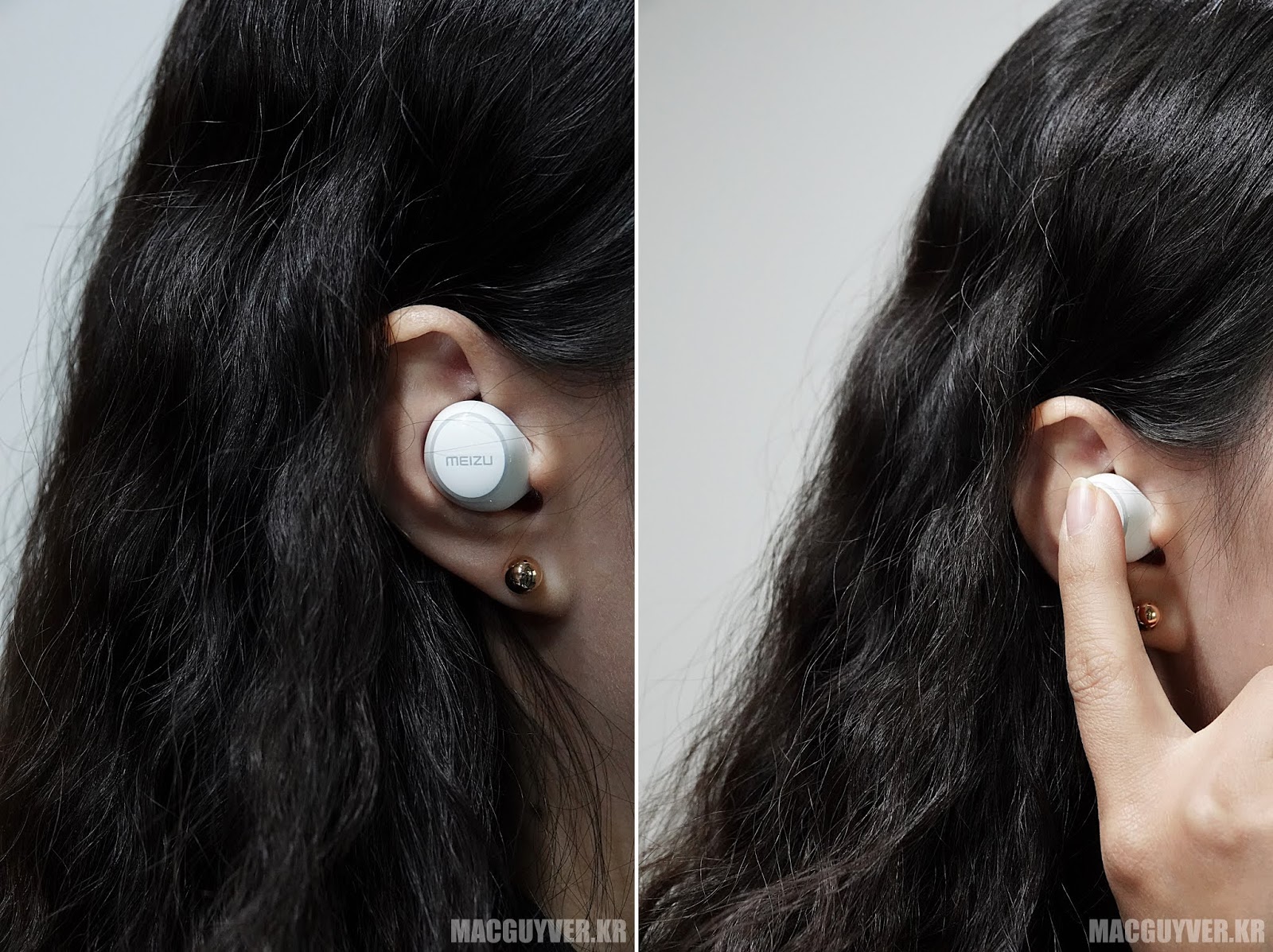 #4. 인터페이스 : 버튼이 따로 없는 것처럼 보이는 메이주 팝스(MEIZU POPs)는 터치 기능으로 동작을 하도록 되어 있습니다. 볼륨을 줄이려면 왼쪽 이어버드를 길게 누르면 되는 것이죠.